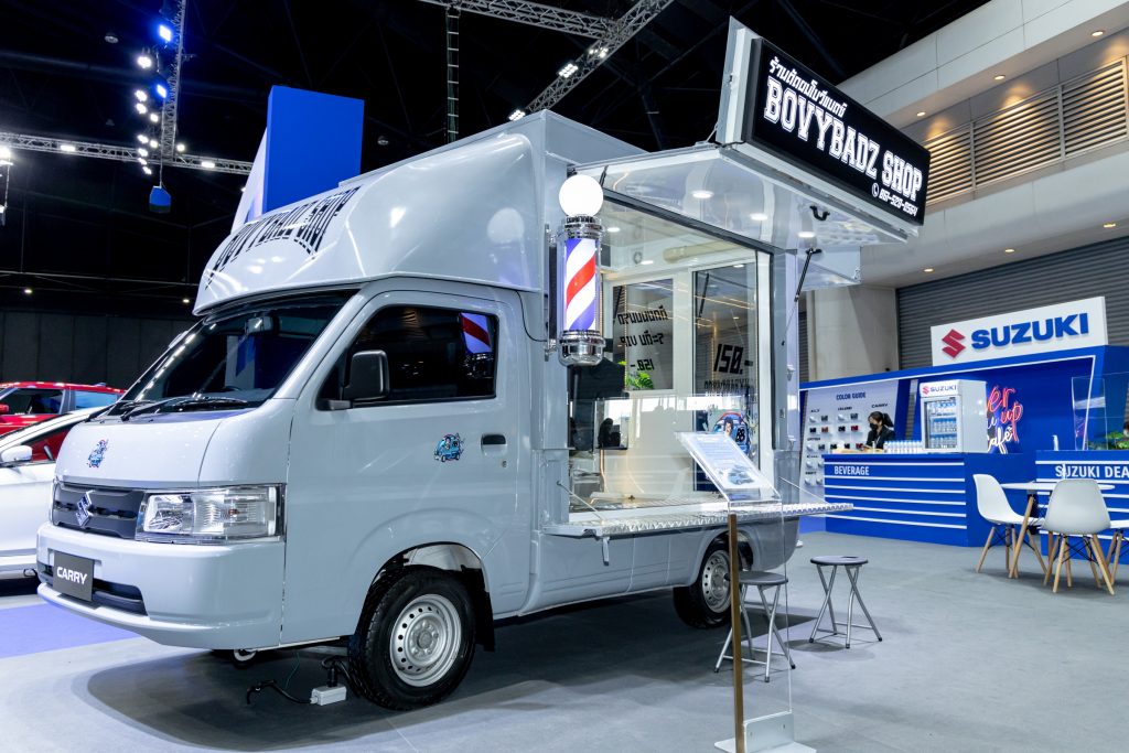 ล่าสุด ซูซูกิ แครี่ มาพร้อมบทบาทของร้านตัดผมเคลื่อนที่ ครบครันด้วยอุปกรณ์บาร์เบอร์ระดับวีไอพี ภายในงาน Bangkok Auto Salon 2022 เพื่อเป็นแนวทางสำหรับผู้ประกอบการ ตอกย้ำความอเนกประสงค์ของรถบรรทุกขนาดเล็กที่สามารถปรับแต่งรองรับการใช้งานได้หลากหลาย เป็นทางเลือกอันดับต้นๆ สำหรับผู้บริโภคที่มองหารถยนต์เพื่อใช้ประกอบธุรกิจในยุคปัจจุบัน ที่เน้นความอเนกประสงค์ของการใช้งาน ในราคาที่เข้าถึงง่ายและสามารถนำไปดัดแปลงยกระดับการใช้งานภายใต้รูปโฉมต่างๆ นอกเหนือจากนั้นในงาน Fast Auto Show Thailand 2022 ซูซูกิ แครี่ มาภายใต้บทบาทของ “ร้านขายก๋วยจั๊บญวนจรุงรส” ซึ่งเป็นอีกหนึ่งแนวทางในยุคที่ผู้ประกอบการต้องสร้างโอกาสในการเข้าถึงผู้บริโภค และเป็นหนึ่งจุดแข็งของฟู้ดทรัคที่สร้างงานสร้างอาชีพในรูปแบบของธุรกิจติดล้อที่ใช้การตลาดเชิงรุกในการเข้าหาผู้บริโภค แทนที่การหยุดนิ่งอยู่กับที่