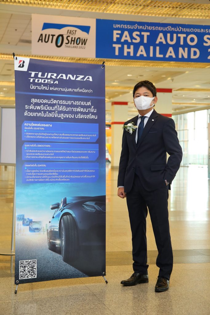 มร. เคนสุเกะ โยชิดะ กรรมการบริษัท ไทยบริดจสโตน จำกัด และบริษัท บริดจสโตนเซลส์ (ประเทศไทย) จำกัด เผยว่า “บริดจสโตนได้เข้าร่วมเป็นผู้สนับสนุนการจัดงาน Fast Auto Show Thailand 2022 กิจกรรมสำหรับคนรักรถยนต์ เพื่อเป็นส่วนหนึ่งในการขับเคลื่อนและกระตุ้นตลาดรถยนต์ ตลอดจนภาพรวมเศรษฐกิจในประเทศให้กลับมาฟื้นตัวจากปัจจัยบวกต่าง ๆ ทั้งสถานการณ์โควิด-19 ที่เริ่มคลี่คลาย มาตรการเปิดประเทศและท่องเที่ยวมีแนวโน้มที่ดี ประกอบกับความเชื่อมั่นของผู้บริโภคเริ่มกลับมา นอกจากนี้ยังเป็นการตอกย้ำจุดแข็งของแบรนด์ “BRIDGESTONE” ในฐานะยางรถยนต์ชั้นนำของประเทศญี่ปุ่นที่มีชื่อเสียงเป็นที่ยอมรับในระดับโลก และอยู่คู่คนไทยยาวนานมากว่า 50 ปี มีความมุ่งมั่นในการพัฒนาผลิตภัณฑ์โดยคำนึงถึงความปลอดภัย คุณภาพของผลิตภัณฑ์ และความหลากหลายของประเภทยาง เพื่อตอบโจทย์ทุกการใช้งานและส่งมอบประสบการณ์ในการขับขี่ที่ดีเยี่ยม จนก้าวสู่แบรนด์ยอดนิยมของไทย และได้รับความไว้วางใจให้เป็นยางมาตรฐานติดรถยนต์หลายยี่ห้อซึ่งสามารถหาชมได้ในงานนี้ และยังสามารถเข้าถึงข้อมูลผลิตภัณฑ์ยางแต่ละรุ่นของ บริดจสโตน ได้แก่ POTENZA ADRENALIN RE004, POTENZA SPORT, TURANZA T005A, ECOPIA EP150, ECOPIA EP300, ECOPIA H/L001, ALENZA 001, DUELER A/T001 และ DUELER H/T 684II ได้จากสื่อประชาสัมพันธ์ภายในงาน”
