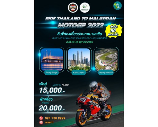 Ride Bangkok to Malaysian MOTOGP 2022 ขับขี่ท่องเที่ยวมาเลเซีย 6 วัน 5 คืน จำกัด 50 ท่านเท่านั้น !!