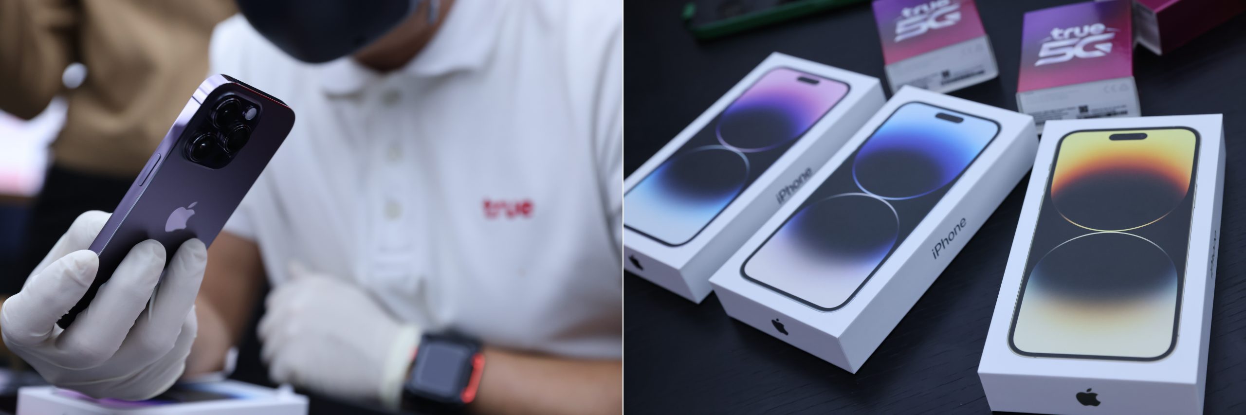 ดร.ธีรเดช ดำรงค์พลาสิทธิ์ กรรมการผู้จัดการใหญ่ (ร่วม) บริษัท ทรู คอร์ปอเรชั่น จำกัด (มหาชน) กล่าวว่า “ทรู 5G กลับมาสร้างปรากฏการณ์เปิดตัว iPhone 14 อย่างยิ่งใหญ่กว่าที่เคย จัดใหญ่ส่งมอบเครื่องพร้อมกันทุกภาคทั่วไทย เพื่อฉลองลูกค้ากลุ่มแรกในไทยที่ได้เป็นเจ้าของ iPhone 14 เป็น Tier1 พร้อมกับหลายๆ ประเทศทั่วโลก และยังมีการถ่ายทอดสดบรรยากาศการรับเครื่องใน 12 แลนด์มาร์คหลัก ได้แก่ กรุงเทพฯ ที่สยามสแควร์ ซอย 2 และไอคอนสยาม, ชลบุรี, อยุธยา, นครปฐม, เชียงใหม่, เชียงราย, ภูเก็ต, สงขลา, นครราชสีมา, อุดรธานี และจันทบุรี ให้คนไทยได้ตื่นตาตื่นใจกับความสมาร์ทสุดล้ำกว่าใคร ทั้งการส่งมอบเครื่อง และเครือข่ายอัจฉริยะ 5G ที่เร็วแรงกว่า ครอบคลุมที่สุดทั่วประเทศ การันตีด้วยรางวัลระดับโลก พร้อมมอบข้อเสนอและสิทธิพิเศษสุดคุ้มเหนือทุกขีดจำกัด”