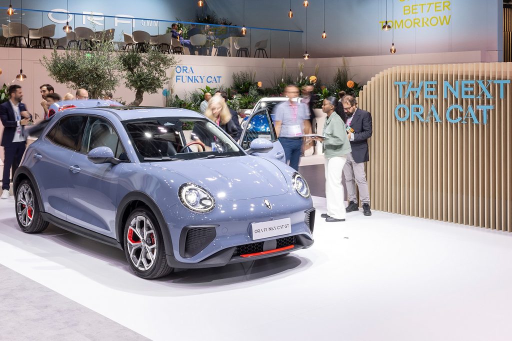 - ORA Funky Cat: หลังจากที่ ORA Cat รุ่นบุกเบิกประสบความสำเร็จในการเปิดตัวที่งาน IAA Mobility ในเมืองมิวนิคเมื่อปีที่แล้ว ล่าสุดเกรท วอลล์ มอเตอร์ได้จัดแสดง ORA Funky Cat รถยนต์ไฟฟ้า 100% ดีไซน์สไตล์เรโทร แต่ยังคงความสดใสและล้ำสมัย พร้อมที่จะเผชิญทุกการผจญภัย ซึ่งมีระยะการขับขี่ไกลถึง 310 กิโลเมตรต่อการชาร์จเพียง 1 ครั้ง โดยรถยนต์รุ่นนี้จะส่งมอบล็อตแรกในประเทศเยอรมนีในช่วงฤดูใบไม้ร่วงปีนี้ ส่วนประเทศถัดไปที่มีแผนจะส่งมอบคือสหราชอาณาจักรและอิสราเอล