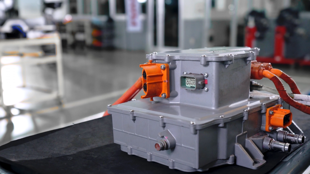 - ระบบชาร์จไฟฟ้าแบบออนบอร์ด (OBC: On-Board Charger) : ทำหน้าที่แปลงกระแสไฟฟ้าจากกระแสสลับ (AC) เป็นกระแสตรง (DC) ในการชาร์จไฟกลับเข้าสู่แบตเตอรี่ หรือจ่ายไฟแรงดันสูงจากกระแสตรง (DC) เป็นกระแสสลับ (AC) ให้มอเตอร์ขับเคลื่อน และอีกหน้าที่คือแปลงไฟฟ้ากระแสตรงแรงดันสูงให้กลายเป็นไฟฟ้ากระแสตรงแรงดันต่ำ เพื่อชาร์จไฟกลับเข้าสู่แบตเตอรี่แรงดันต่ำ 12 โวลต์