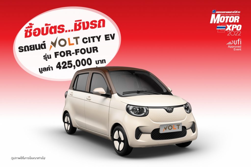 2.“ซื้อบัตร…ชิงรถ” ผู้ซื้อบัตรชมงาน มีสิทธิ์ชิงรถยนต์ VOLT CITY EV รุ่น FOR-FOUR มูลค่า 425,000 บาท จำนวน 1 รางวัล