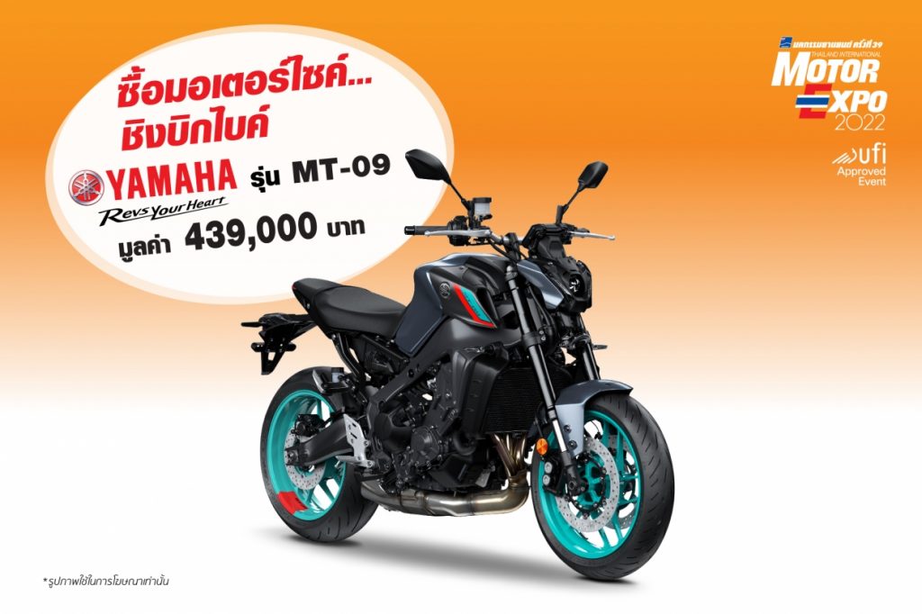 4.“ซื้อมอเตอร์ไซค์…ชิงบิกไบค์” เมื่อจองหรือซื้อรถจักรยานยนต์ใหม่ในงาน มีสิทธิ์ชิงรางวัล รถจักรยานยนต์ YAMAHA รุ่น MT-09 มูลค่า 439,000 บาท จำนวน 1 รางวัล