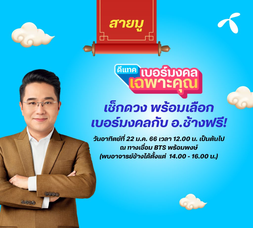 - สายมู:ดีแทคชวนทุกคน ทุกค่าย ร่วมงานเช็กดวง ดูเบอร์ฟรี! รับตรุษจีนปีกระต่ายทอง