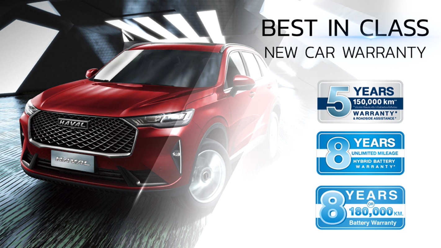- “Worry Free” ขับขี่อย่างไร้กังวลกับการรับประกันคุณภาพรถใหม่ที่เป็น Best-in-class ถึง 5 ปี หรือ 150,000 กิโลเมตร การรับประกันแบตเตอรี่ ฟรี 8 ปี ไม่จำกัดระยะทาง สำหรับแบตเตอรี่ Hybrid และ ฟรี 8 ปี หรือ 180,000 กิโลเมตร สำหรับแบตเตอรี่ EV พร้อมแพ็คเกจการบำรุงรักษาตามระยะทางและบริการช่วยเหลือฉุกเฉินตลอด 24 ชั่วโมง (Roadside Assistant) ตลอดระยะเวลา 5 ปี ที่มาพร้อมกับรถใหม่ทุกคัน นอกจากนี้ เกรท วอลล์ มอเตอร์ ได้จัดตั้ง EV Battery Rapid Team หรือหน่วยงานวิศวกรผู้เชี่ยวชาญเฉพาะด้านเพื่อให้คำแนะนำและตรวจสอบสภาพแบตเตอรี่กรณีรถเกิดอุบัติเหตุ เพื่อให้บริการที่รวดเร็วยิ่งขึ้น พร้อมทั้งได้จัดตั้ง GWM BATTERY HOTLINE CALL CENTER สายด่วนเพื่อรับแจ้งปัญหาเกี่ยวกับแบตเตอรี่และการเคลมโดยให้บริการตลอด 24 ชั่วโมง โทร 02-668-8888 กด 4