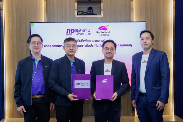 นายจุมพล ริมสาคร ประธานคณะกรรมการ บริษัท ดี พี เซอร์เวย์ แอนด์ลอว์ จำกัด พร้อมด้วย นายกลพัฒน์ รัตนาภรณ์ กรรมการผู้จัดการ บริษัท ดี พี เซอร์เวย์ แอนด์ลอว์ จำกัด หรือ DP Survey ร่วมพิธีลงนามบันทึกข้อตกลงความร่วมมือการให้บริการตรวจสภาพรถยนต์ก่อนการรับประกันภัย และการสำรวจอุบัติเหตุรถยนต์กับ นายสีหนาท ล่ำซำ กรรมการผู้จัดการใหญ่ บริษัท เพอร์เพิล เวนเจอร์ส จำกัด หรือ Robinhood ผู้นำการตลาดด้านการให้บริการรับ/ส่งอาหารและสิ่งของ ซึ่งมีพนักงาน Rider ครอบคลุมพื้นที่กทม.และปริมณฑล ถือเป็นผู้นำการตลาดด้านการให้บริการรับ/ส่งอาหารและสิ่งของ สำหรับ DP Survey ซึ่งเป็นผู้นำและเชี่ยวชาญด้านการสำรวจภัย ทั้งการสำรวจภัยอุบัติเหตุรถยนต์ และความเสียหายทรัพย์สิน รวมทั้งให้บริการตรวจสภาพรถยนต์ก่อนการรับประกันภัย นอกจากนี้ยังให้บริการด้านงานสำรวจอุบัติเหตุและประเมินความเสียหายในธุรกิจประกันวินาศภัย ซึ่งมีเครือข่ายครอบคลุมทั่วประเทศด้วยเช่นกัน