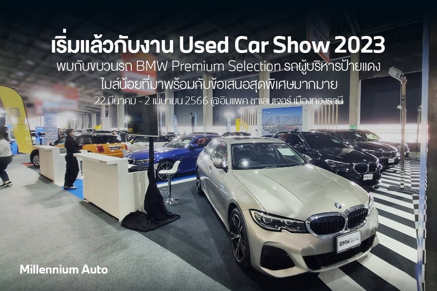 บริษัท มิลเลนเนียม ออโต้ กรุ๊ป จำกัด ผู้จำหน่ายรถยนต์ บีเอ็มดับเบิลยู และ มินิ อย่างเป็นทางการ ยกทัพรถผู้บริหาร บีเอ็มดับเบิลยู ป้ายแดง ไมล์น้อย และ ‘มินิ เน็กซ์’ (MINI NEXT) รถ มินิ มือสอง สภาพนางฟ้า รวมกว่า 100 คัน มาจำหน่ายในราคาสุดพิเศษ ภายในงาน มหกรรมรถยนต์มือสอง ครั้งที่ 14 วันนี้ ถึง 2 เมษายน พ.ศ. 2566 บริเวณลานอเนกประสงค์ด้านหลัง ชาเลนเจอร์ ฮอลล์ 1-2 ศูนย์แสดงสินค้าและการประชุม อิมแพ็ค เมืองทองธานี