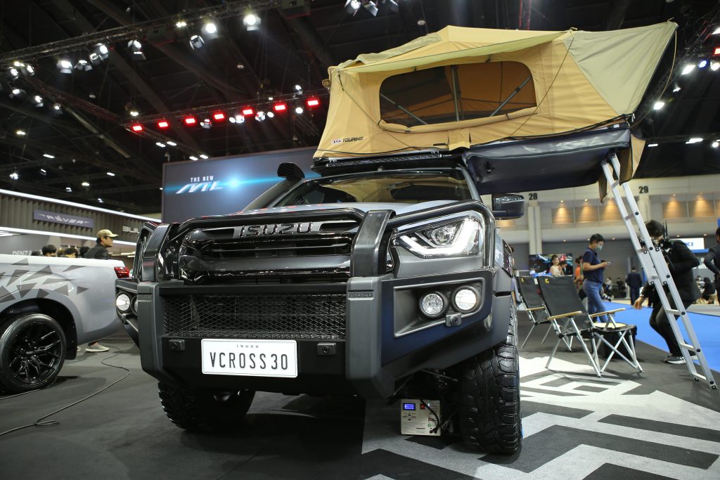 - ใหม่! อีซูซุ วี-ครอส 4×4 รุ่น 4 ประตู 3.0 ดีดีไอ บลูเพาเวอร์ เกรด M สี Islay Grey Opaque แต่งพิเศษสำหรับสายแคมป์ปิ้ง ให้ลุคสปอร์ต ดุดัน พร้อมชุดแต่งจากอีซูซุ อาทิ กันชนหน้าแบบ Bull Bar, สน็อคเกิ้ล, ชุดลากจูง Tow Bar, และบันไดข้าง ซึ่งเป็นการเปิดตัวชุดแต่ง อีซูซุครั้งแรกในประเทศไทย พร้อมติดตั้งชุดช่วงล่างจาก PROFENDER ล้ออัลลอย ขนาด 9 x 18 นิ้ว ยาง Toyo Tires R/T ขนาด 265/60 R18 เต็นท์ติดหลังคารถรุ่น ARB Flinders ชุดตะแกรง ARB Base Rack พร้อมขาจับหลังคา และไฟสปอร์ตไลท์ส่องสว่างบนตะแกรง ARB ขนาด 40 นิ้ว
