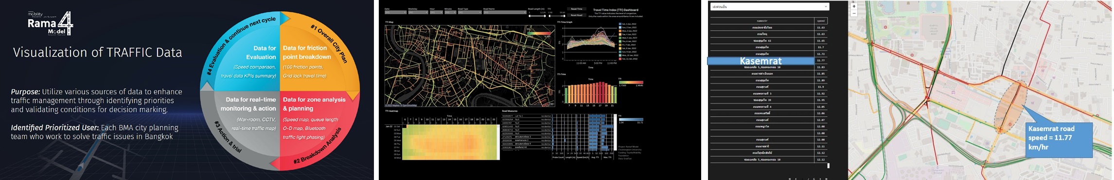 ทีมงานโมเดลพระราม 4 ได้เล็งเห็นถึงศักยภาพของการจัดการจราจรที่ขับเคลื่อนด้วยข้อมูลผ่านโครงการนี้อย่างชัดเจน การใช้ข้อมูลในอดีตสำหรับดูแนวโน้มที่สามารถรองรับการออกแบบโครงสร้างพื้นฐานด้านการจราจร เช่น เวลาเปิด-ปิดสัญญาณไฟ หรือตารางเวลาและเส้นทางของระบบขนส่งสาธารณะได้อย่างชัดเจน นอกจากนี้ข้อมูลแบบเรียลไทม์ที่มีอย่างเหมาะสมก็สามารถช่วยสนับสนุนการจัดการจราจรและบังคับใช้ รวมถึงการจัดการเหตุการณ์ต่างๆ และความผิดปกติที่เกิดขึ้น สิ่งต่างๆ เหล่านี้แสดงให้เห็นถึงความจำเป็นในการที่จะมีแพลตฟอร์มในการแชร์ข้อมูลแบบเปิดมากขึ้นและประสานความร่วมมือของหน่วยงานที่เกี่ยวข้อง