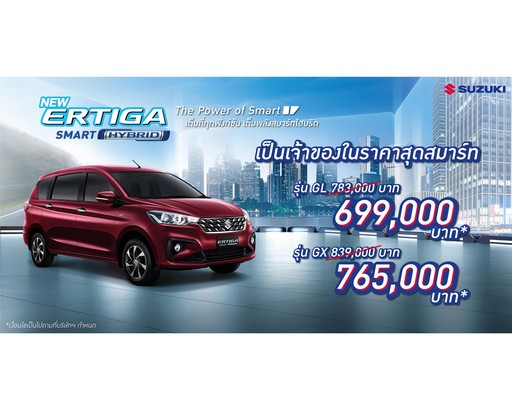 “SUZUKI ERTIGA SMART HYBRID -The Power of Smart เต็มที่ทุกฟังก์ชัน เต็มพลังสมาร์ทไฮบริด” สร้างปรากฎการณ์ให้ตลาดรถอเนกประสงค์ในประเทศ ไทย ด้วยการเป็นรถประเภท MPV รุ่นแรกที่มาพร้อมเครื่องยนต์ SMART HYBRID ใหม่ ตอบโจทย์ในทุกการใช้งานได้อย่างเหนือระดับ และนอกจากจะเป็นรถอเนกประสงค์ขนาด 7 ที่นั่ง ที่มอบความคุ้มค่า ครบครันที่สุดให้แก่ผู้บริโภคแล้ว จากแคมเปญที่เรานำเสนอให้แก่ลูกค้าในครั้งนี้ ยังส่งผลให้ SUZUKI ERTIGA SMART HYBRID กลายเป็นรถ MPV ที่มีราคาคุ้มค่ามากที่สุดในตลาดอีกด้วย โดยมีราคาเริ่มต้นต่ำกว่า 700,000 บาท นับว่าเป็นราคาที่เข้าถึงง่ายที่สุดในกลุ่มตลาดรถ MPV