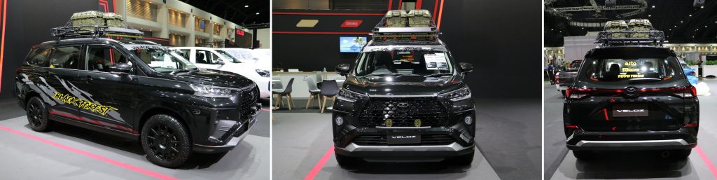 “VELOZ ชุดแต่ง BLACK FOREST” ตกแต่งใหม่เพิ่มความอเนกประสงค์ จัดเต็มด้วยแร็คใส่ของ บนหลังคา มาพร้อมกับไฟบาร์สปอร์ตไลน์ เพื่อการใช้งานที่หลากหลาย อีกทั้งคุมโทนตัวรถด้วยสีดำตัดเทาทั้งคัน ที่ให้ความรู้สึกเท่ และดุดัน พร้อมตอบโจทย์สายลุย ไม่ว่าจะเป็นการใช้งานในเมืองหรือออกไปผจญภัยตามที่ต่างๆ โดยชุดแต่งจะประกอบไปด้วย แร็คใส่ของบนหลังคาพร้อมไฟบาร์สปอร์ตไลท์ ปลายท่อไอเสีย ไฟสปอร์ตไลท์ ล้อแม็กซ์ Motegi Racing ขนาด 17×7.5 +40 ยาง Toyo Open Country A/T 3 ขนาด 215/60/R17 โช้คอัพ Profender และคันเร่งไฟฟ้าจาก ECU=SHOP