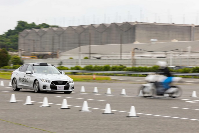 นิสสัน สาธิตการพัฒนาเทคโนโลยีช่วยเหลือผู้ขับขี่ขั้นสูงด้วยอุปกรณ์แบบ LIDAR ที่มาพร้อมกับฟีเจอร์การหลบหลีกการชนกันบนทางแยก การสาธิตจัดขึ้นในพื้นที่ของนิสสันโดยมีการแสดงสมรรถภาพของเทคโนโลยีเพื่อทดสอบระบบหลบหลีก การชนบนทางแยกที่มีความซับซ้อน