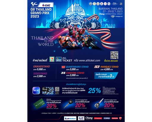 ศึกโมโตจีพี สนามประเทศไทย ความภาคภูมิใจของคนไทยในการเป็นเจ้าภาพการแข่งขันรถจักรยานยนต์ทางเรียบชิงแชมป์โลก โมโตจีพี รายการ “OR Thailand Grand Prix 2023” ที่จะระเบิดศึก วันที่ 27 – 29 ตุลาคม 2566 ที่ สนามช้าง อินเตอร์เนชั่นแนล เซอร์กิต จ.บุรีรัมย์