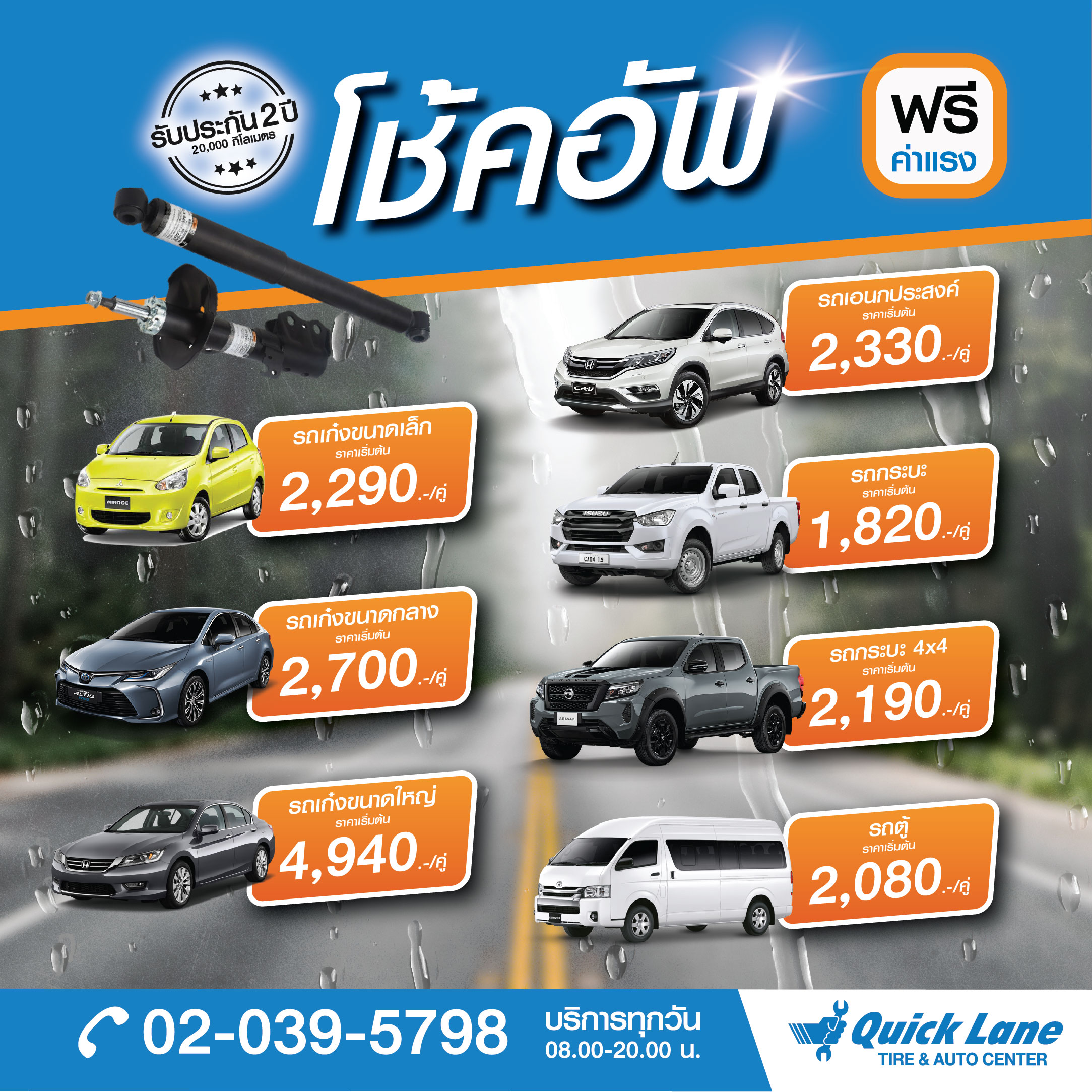 - สำหรับรถกระบะ 4×4 ราคาเริ่มต้นเพียง 2,190 บาทต่อคู่