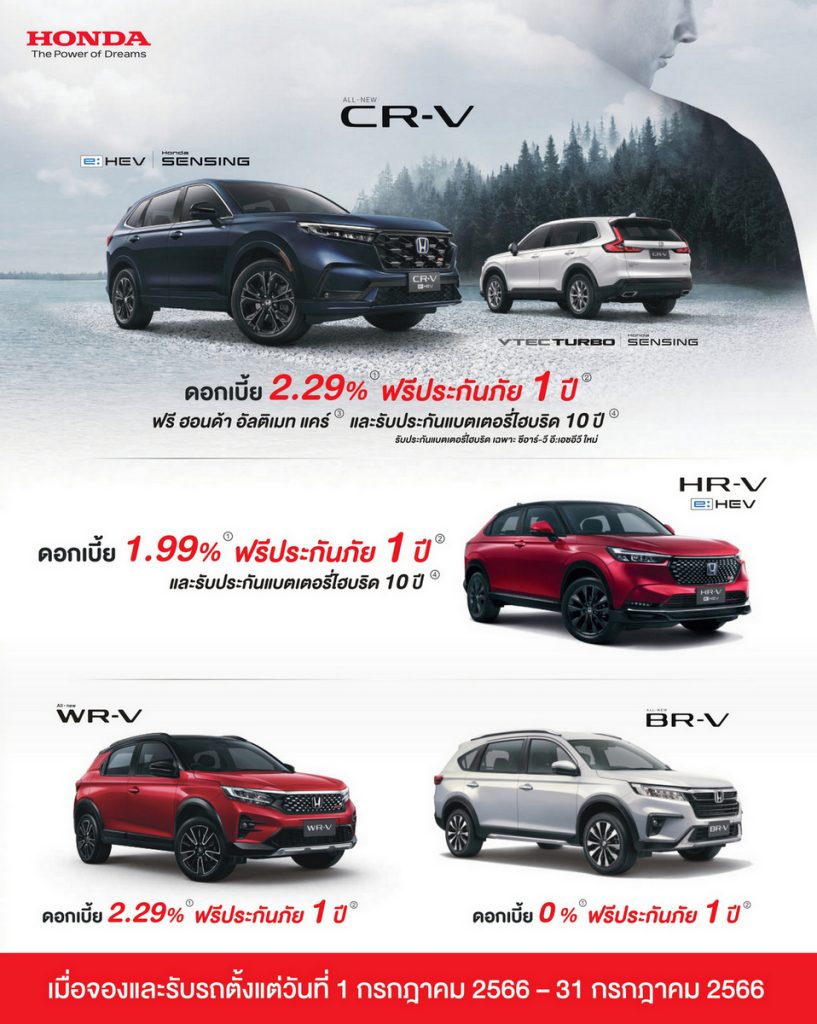 โดยมาพร้อมข้อเสนอพิเศษ ดอกเบี้ย 2.09%** พร้อมฟรีประกันภัย 1 ปี** และเฉพาะรุ่น e:HEV เพิ่มการรับประกันแบตเตอรี่ไฮบริด 10 ปี และรับประกันระบบไฮบริดทั้งระบบ 5 ปี ไม่จำกัดระยะทาง** เมื่อจองและรับรถตั้งแต่ 5 กรกฎาคม – 30 กันยายน 2566**