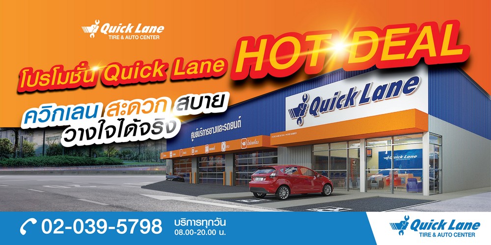 ควิกเลนทั้ง 7 สาขา ในกรุงเทพและปริมณฑล และอีก 12 สาขาในต่างจังหวัด รวมทั้งสิ้น 19 สาขาทั่วประเทศไทย นำเสนอบริการบำรุงรักษารถยนต์ทุกรุ่น ทุกยี่ห้อ ครอบคลุมลักษณะงานกว่า 14 กลุ่ม ด้วยมาตรฐานระดับโลกที่สะดวกรวดเร็ว จำหน่ายยางรถยนต์คุณภาพมาตรฐานระดับโลก พร้อมบริการอื่น ๆ อีกมากมาย โดยมีช่างเทคนิคและทีมงานผู้เชี่ยวชาญที่ผ่านการอบรมครบตามมาตรฐานระดับสากล ควิกเลนทั้ง 19 สาขาเปิดให้บริการทุกวัน ตั้งแต่เวลา 08.00 – 20.00 น. ไม่มีวันหยุด ลูกค้าสามารถเข้ารับบริการได้โดยไม่จำเป็นต้องนัดล่วงหน้า ผู้ที่สนใจเข้ารับบริการสามารถสอบถามข้อมูลสินค้า ราคา และโปรโมชั่น ได้ที่ศูนย์บริการข้อมูลลูกค้าสัมพันธ์ควิกเลน ที่หมายเลข 02-039-5798 หรือที่ https://www.facebook.com/QuickLaneThailand