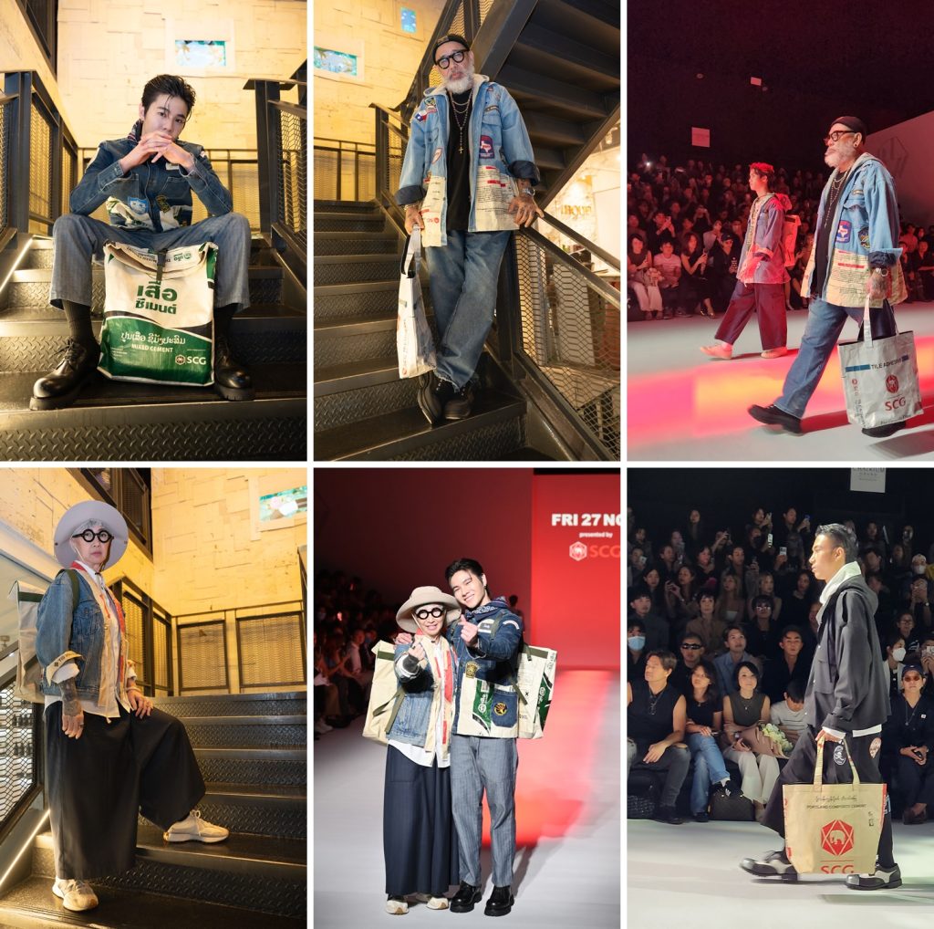 นายนพพร กีรติบรรหาร Deputy Chief Marketing Officer – Marketing and Branding Cement and Green Solution Business – เอสซีจี กล่าวว่า “เอสซีจีให้ความสำคัญในการดำเนินธุรกิจ ด้วยแนวคิด SCG Circular way เพื่อหมุนเวียนการใช้ทรัพยากรอย่างคุ้มค่าและเกิดประโยชน์สูงสุด ซึ่งเอสซีจีมีถุงบรรจุปูนซีเมนต์รอการทำลาย เพราะไม่สามารถนำมาบรรจุปูนซีเมนต์ได้อีก เนื่องจากการปรับข้อมูลผลิตภัณฑ์จากการพัฒนาคุณภาพสินค้าอย่างต่อเนื่อง หรือข้อกำหนดว่าด้วยฉลากบรรจุภัณฑ์หรือจากกระบวนการพิมพ์ จึงหาทางต่อยอด สร้างสรรค์ และเพิ่มมูลค่าให้กับถุงปูนซีเมนต์เหล่านี้ โดยล่าสุดร่วมมือกับ คุณสิท ชนะชัย จรียะธนา จากแบรนด์ FRI27NOV. นำถุงปูนซีเมนต์ มา Upcycle เป็นแฟชั่นแนว Sustain และเปิดตัวในงาน Bangkok International Fashion Week 2023 ณ สยามพารากอน ภายใต้คอลเลกชัน The Day Yester Tomorrow ด้วยแนวคิด การย้อนกลับไปหาสิ่งที่เรามี ผสมผสานเทคนิคและวัสดุใหม่ แล้วนำกลับมาใช้ในวันนี้ อาทิ การใช้เทคนิคการตัดเย็บถุงปูนกับเสื้อยีนส์เก่า ปรับรูปโฉมให้ทันสมัย ให้กลายเป็น Lifestyle Items ที่สามารถสื่อสารแบรนด์ให้เข้ากับวิถีชีวิตของลูกค้าได้ทุกเพศ ทุกวัย อีกทั้งเป็นแนวทางต่อยอดการทำ Brand Commerce ในอนาคตอีกด้วย และนี่เป็นอีกหนึ่งตัวอย่างในการนำทรัพยากรกลับมาใช้และเพิ่มคุณค่าได้อย่างมีชั้นเชิง