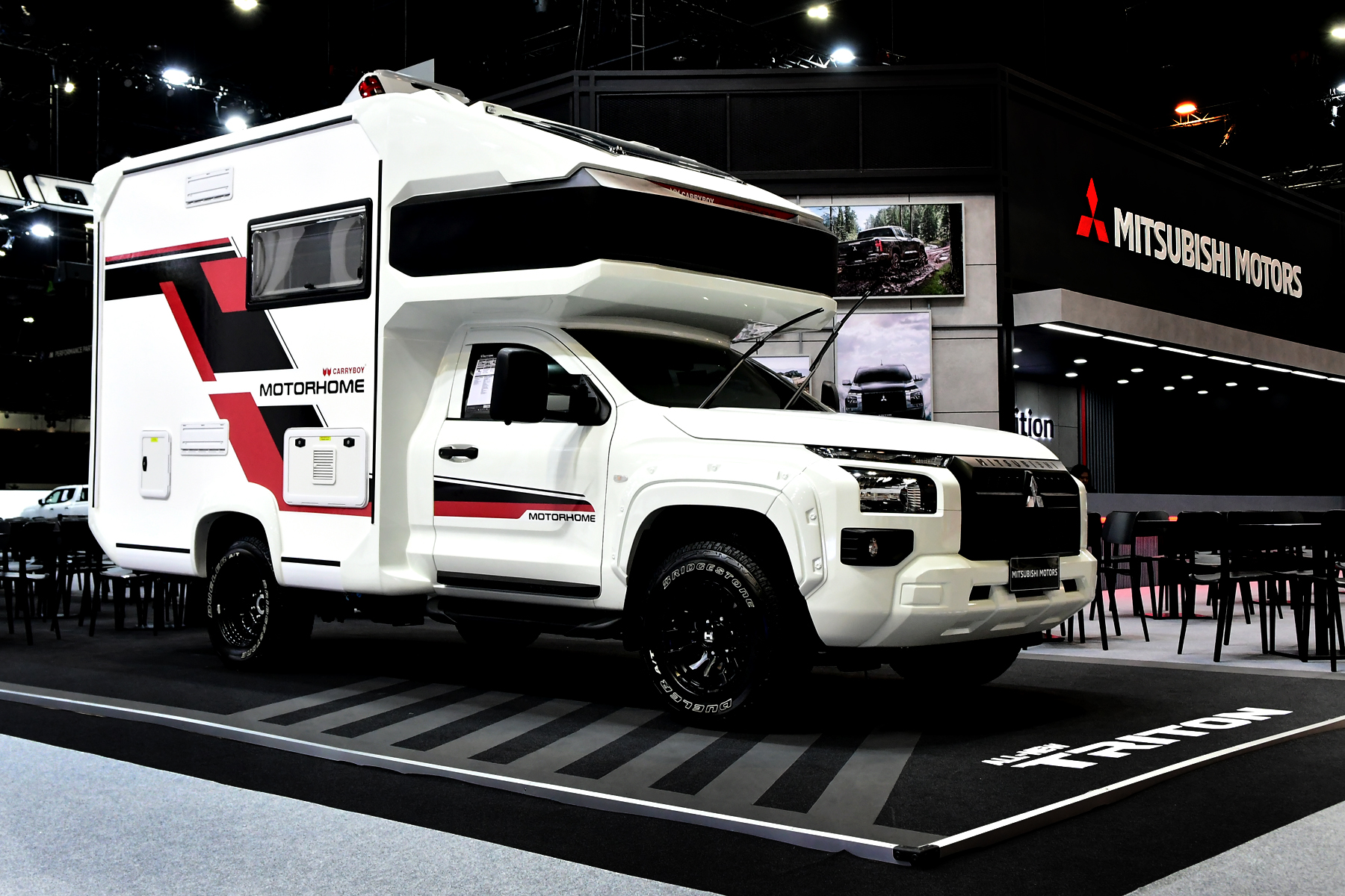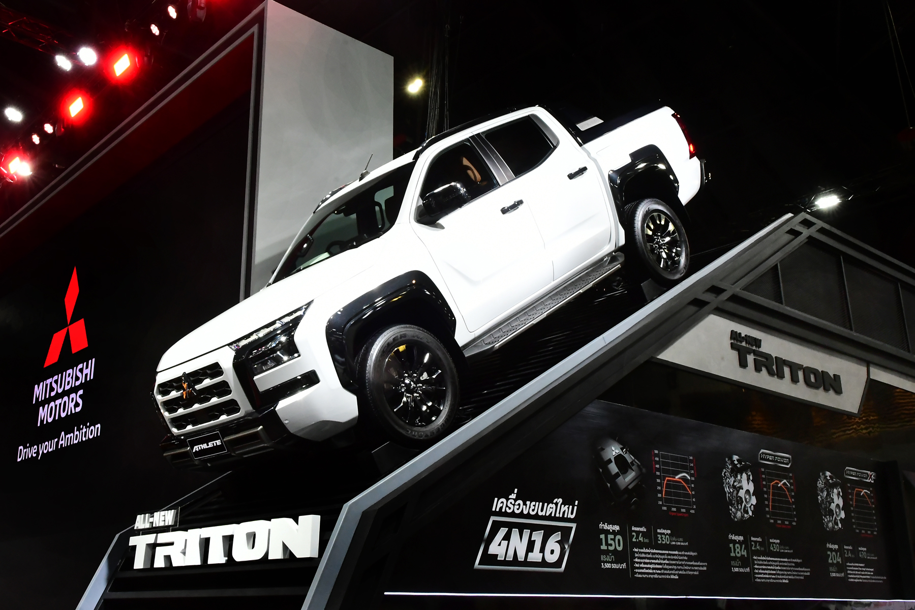 บริษัท มิตซูบิชิ มอเตอร์ส (ประเทศไทย) จำกัด ชวนลูกค้าชมโฉม ออล-นิว มิตซูบิชิ ไทรทัน ครบทุกรุ่น ครั้งแรก ที่งาน “มหกรรมยานยนต์ ครั้งที่ 40” นำทัพโดย ออล-นิว มิตซูบิชิ ไทรทัน แอทลีท และ ออล-นิว มิตซูบิชิ ไทรทัน ดับเบิ้ล แค็บ ขับเคลื่อน 4 ล้อ อัลตร้า เกียร์อัตโนมัติ ที่มาพร้อมกับเทคโนโลยีขับเคลื่อน 4 ล้อ Super Select 4WD II เอกลักษณ์เฉพาะมิตซูบิชิ มอเตอร์ส ที่โดดเด่นด้วยระบบขับเคลื่อน 4 ล้อฟูลไทม์ (4H) เจ้าแรกในตลาดกระบะไทย ใหม่ล่าสุดด้วย 7 โหมดการขับขี่ และระบบควบคุมการขับเคลื่อนและสมดุลขณะเข้าโค้ง (Active Yaw Control: AYC) ขับขี่คล่องตัวด้วยความปลอดภัยสูงสุดบนทุกสภาพถนน พร้อมสัมผัสกลุ่มรถกระบะออล-นิว ไทรทัน ตัวเตี้ย ครบทุกแค็บ ที่มาพร้อมกับเครื่องยนต์ใหม่ที่ประหยัดน้ำมันกว่า แชส์ซีส์ใหม่ “เมกา เฟรม” สุดแกร่งที่ใหญ่กว่าเดิม ทั้งยังจับมือสำนักแต่งรถทุกสายทั้งแนวเรซซิ่ง แนวแคมป์ปิ้ง 4WD และเชิงพาณิชย์ จัดแสดงรถแต่งทรงต่าง ๆ สร้างแรงบันดาลใจ ทั้งกระบะตัวเตี้ยแต่งเต็มสไตล์เรซซิ่งสุดเท่ คอกซิ่งสุดหล่อ และติดตั้งตู้ทึบสำหรับใช้งานเชิงพาณิชย์ รวมถึงกระบะยกสูงจัดทรงสายแรลลี่ สายแคมป์ปิ้ง มอเตอร์โฮม และอื่น ๆ มาให้ยลโฉมอีกด้วย