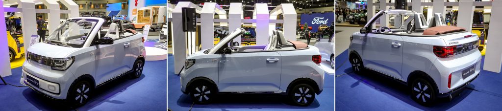 สำหรับ WULING MINI EV CONVERTIBLE เป็นรถไฟฟ้าเปิดประทุนขนาดเล็ก ขนาดตัวรถยาว 3,059 มม. กว้าง 1,521 มม. และสูง 1,614 มม. ออกแบบสำหรับโดยสาร 2 คน ซึ่งพื้นที่เบาะหลังถูกพัฒนาเป็นพื้นที่สำหรับเก็บหลังคาอ่อนของรถ รถไฟฟ้าเปิดประทุนขนาดเล็กรุ่นนี้ ใช้มอเตอร์ไฟฟ้าให้กำลังขับเคลื่อน 41 แรงม้า มีแรงบิดสูงสุด 110 นิวตัน-เมตร สามารถทำความเร็วได้สูงสุด 100 กม./ชม. ด้วยขนาดแบตเตอรี 26.5 kWh สามารถให้ระยะการเดินทางต่อการชาร์จได้ 280 กิโลเมตรตามมาตรฐาน CLTC