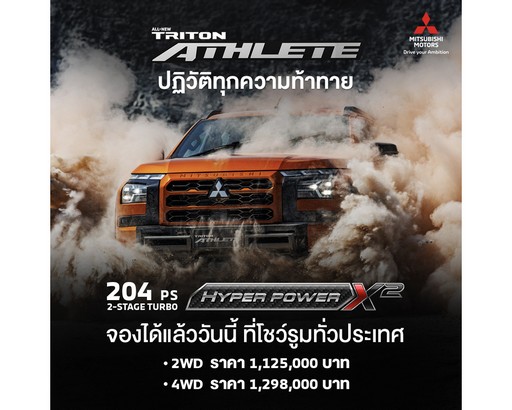 มิตซูบิชิ มอเตอร์ส ประเทศไทย เปิดราคา ออล-นิว มิตซูบิชิ ไทรทัน แอทลีท รุ่นขับเคลื่อน 2 ล้อ และ ขับเคลื่อน 4 ล้อ