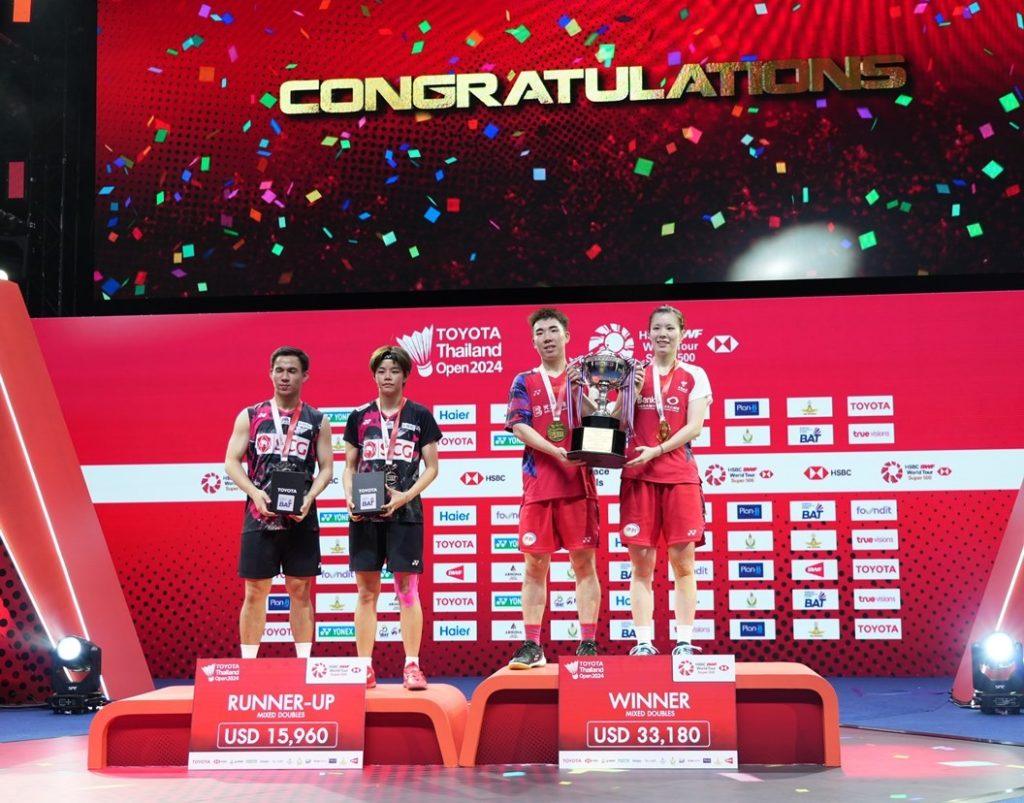 สิ้นสุดการแข่งขันแบดมินตันรายการระดับ “World Tour Super 500TOYOTA Thailand Open 2024” ชิงถ้วยพระราชทานพระบาทสมเด็จพระเจ้าอยู่หัว และเงินรางวัลรวม 420,000 ดอลลาร์สหรัฐ หรือประมาณ 14,700,000 บาท ที่อาคารนิมิบุตร สนามกีฬาแห่งชาติ โดยมีผลการแข่งขันประเภทหญิงเดี่ยว “เม” ศุภนิดา เกตุทอง ท็อปฟอร์มคว้าแชมป์ชนะ หาน เยี่ย จากจีน ด้วยสกอร์ 21-16 และ 25-23 และประเภทหญิงคู่ “กิ๊ฟ” จงกลพรรณ กิติธรากุล และ “วิว” รวินดา ประจงใจ สามารถเอาชนะ เฟเบรียนา ดวีปูจิ กูซูมา และ อเมเลีย คาฮายา ปราติวี จากอินโดนีเซีย ด้วยสกอร์ 21-14 และ 21-14
