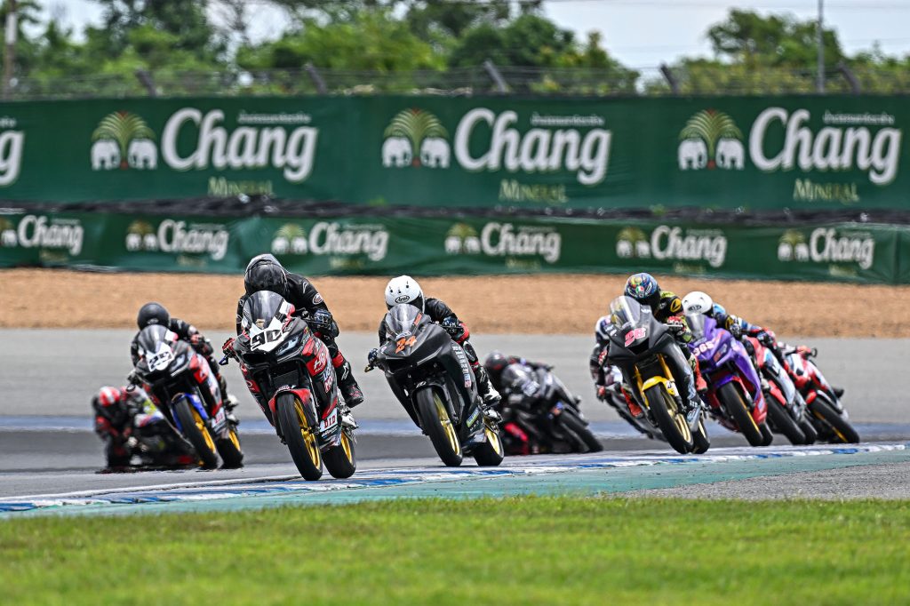 ไฮไลต์ของสุดสัปดาห์นี้ยังคงอยู่ในรุ่นใหญ่ที่สุดของเมืองไทยอย่าง ซูเปอร์ไบค์ 1,000 ซีซี โดย “แสตมป์” อภิวัฒน์ วงศ์ธนานนท์ อดีตแชมป์เอเชียจาก ยามาฮ่า ทีเอ็นพี พีทีที ลูบริแคนท์ส ได้ออกตัวจากโพล ขนาบข้างด้วยคู่แข่งคนสำคัญอย่าง “บอล” จักรกฤษณ์ แสวงสวาท จาก อีสต์ เอ็นเจที เรซซิ่ง ทีม และ “ซีเค” ชัยวิชิต นิสกุล จาก คอร์ มอเตอร์สปอร์ต ไทยแลนด์ ในกริดที่ 2-3