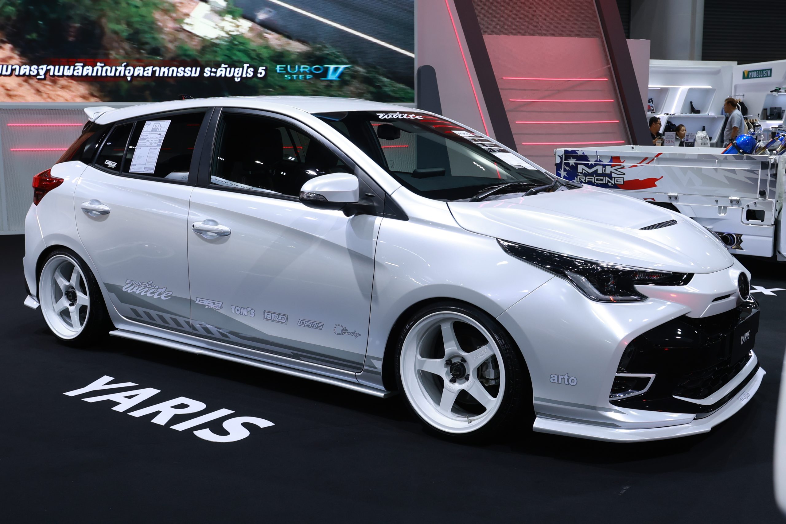“Yaris ชุดแต่ง Snow White Concept” มาพร้อมกับคอนเซ็ปต์การตกแต่งในสไตล์คลีน เน้นไปที่การคุมโทนตัวรถด้วยสีขาวสะอาดตาทั้งคัน แต่แฝงไปด้วยลูกเล่นที่แอบซ่อนเอาไว้อย่างลงตัว ไม่ว่าจะเป็นลายสติกเกอร์ที่ไม่โดดเด่นจนเกินไป และชุดแต่งรอบคันที่ช่วยเพิ่มมิติตัวรถได้เป็นอย่างดี โดยชุดแต่งประกอบด้วยล้อแม็กซ์ขนาด 17 นิ้ว ช่วงล่าง Silver Neomax R ยาง 205/40R17 ท่อไอเสีย BRD และคันเร่งไฟฟ้าจาก ECU=SHOP