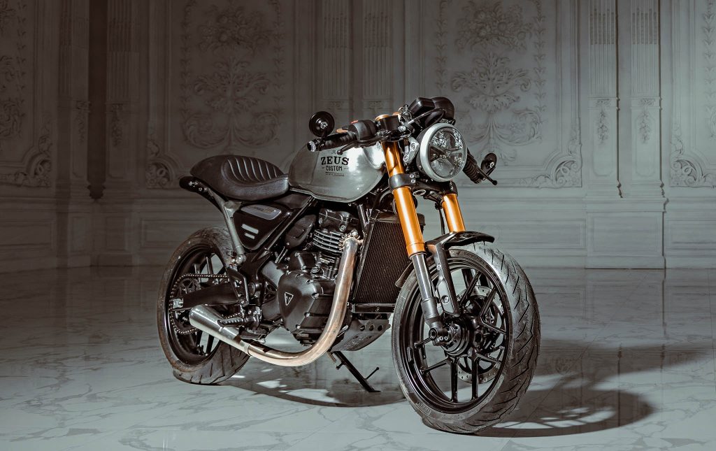 เริ่มกันที่ไทรอัมพ์ Speed 400 กับการคัสตอมโดยสำนักแต่งชื่อดัง Zeus Custom มาในสไตล์ Café Racer สุดร้อนแรง กับคอนเซปต์ Art of Zeus ที่ดึงตัวตนของความเป็น Zeus Custom ออกมาให้มากที่สุด อาทิ ความโฉบเฉี่ยวในรูปแบบงานคราฟท์ ผ่านท่อไอเสียที่ดีไซน์โค้งอันเป็นเอกลักษณ์เฉพาะตัวของ Zeus Custom อีกทั้งยังมีการใช้วัสดุที่เป็นหนังเข้ามาผสมผสาน พร้อมโชว์ความเป็นพื้นผิวให้เห็นเนื้อเหล็กของตัวถังน้ำมันจริง เพื่อให้รถเป็นสไตล์ Café Racer ที่พร้อมสร้างแรงบันดาลใจในการตกแต่งให้กับคนที่ชอบคัสตอมทุกคนได้เป็นอย่างดี