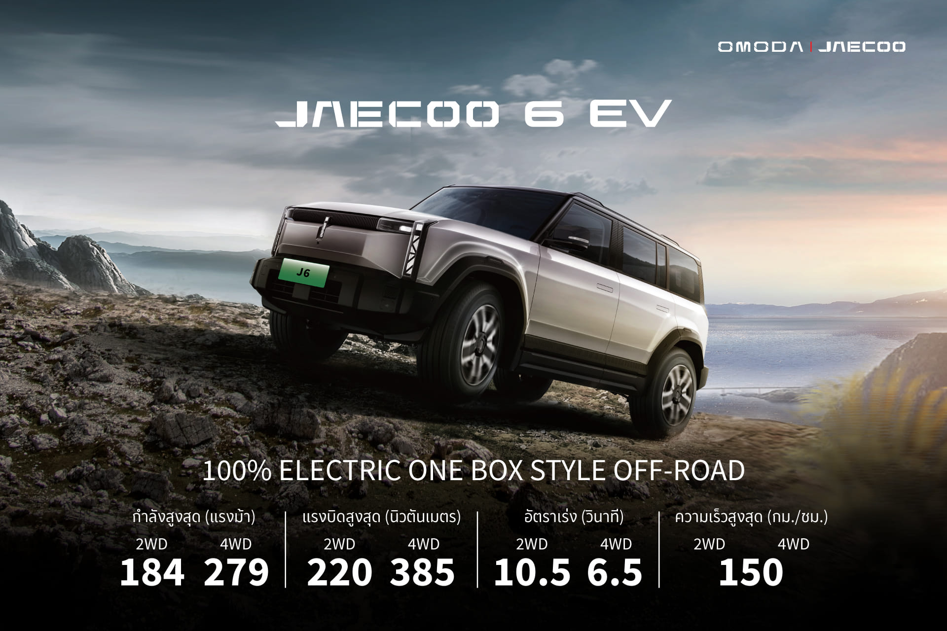 สำหรับตระกูล JAECOO โอโมดา แอนด์ เจคู เปิดตัวด้วย JAECOO 6 EV รถออฟโรดพรีเมียมพลังงานไฟฟ้า 100% ที่ผสมผสานความคลาสสิกเข้ากับเทคโนโลยียนตรกรรม ภายใต้คอนเซ็ปต์ “OFF-ROAD TRENDY” อัดแน่นไปด้วยพลังสุดแข็งแกร่งและสุนทรียะที่งดงาม กับโหมดการขับขี่ 6 แบบที่ตอบโจทย์ทั้งการขับขี่ในเมืองและการขับขี่แบบสมบุกสมบัน ประกอบด้วย 2 รุ่นย่อยได้แก่ JAECOO 6 EV Long Range 2WD มาพร้อมกับราคาคาดการณ์ 1,099,000 บาท และรุ่น JAECOO 6 EV Long Range 4WD กับราคาคาดการณ์ 1,249,000 บาท