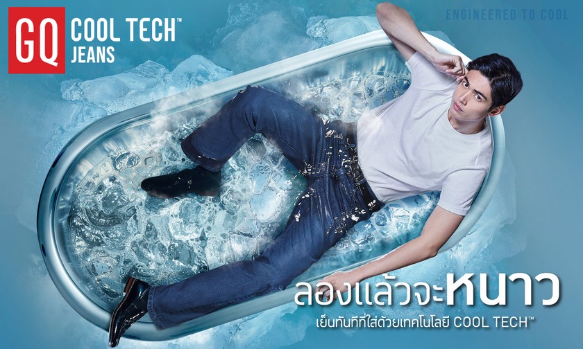ด้วยความมุ่งมั่นที่จะพัฒนาสินค้าที่เหมาะสมกับสภาพอากาศร้อน และตอบโจทย์ความต้องการของผู้บริโภค GQ ได้ออกแบบ GQ Cool Tech™ Jeans ยีนส์แรกของโลกที่พร้อมมอบความเย็นทันทีที่สัมผัส ผ่านการทำงานร่วมกันของ GQ Ultra Ice Zone โซนความเย็นพิเศษที่พิมพ์หมึกเจลเย็น Cool Tech™ ลงไปบนเนื้อผ้า บริเวณต้นขาด้านในซึ่งเป็นจุดหลักที่ร่างกายระบายความร้อนตลอดทั้งวัน ช่วยชาร์จสะสมความเย็น