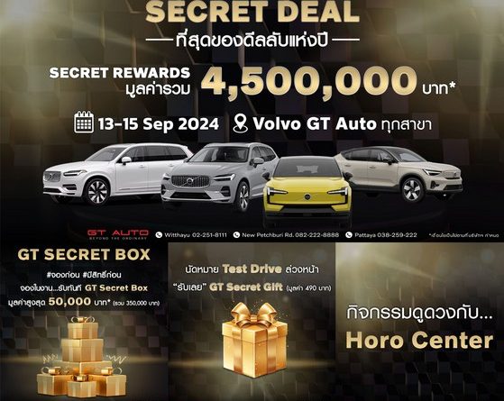 วอลโว่ GT Auto ฉลองยอดขายอันดับ 1 ครึ่งปี แจกโปรแห่งปี Secret Deal พร้อมข้อเสนอ 5 ต่อ
