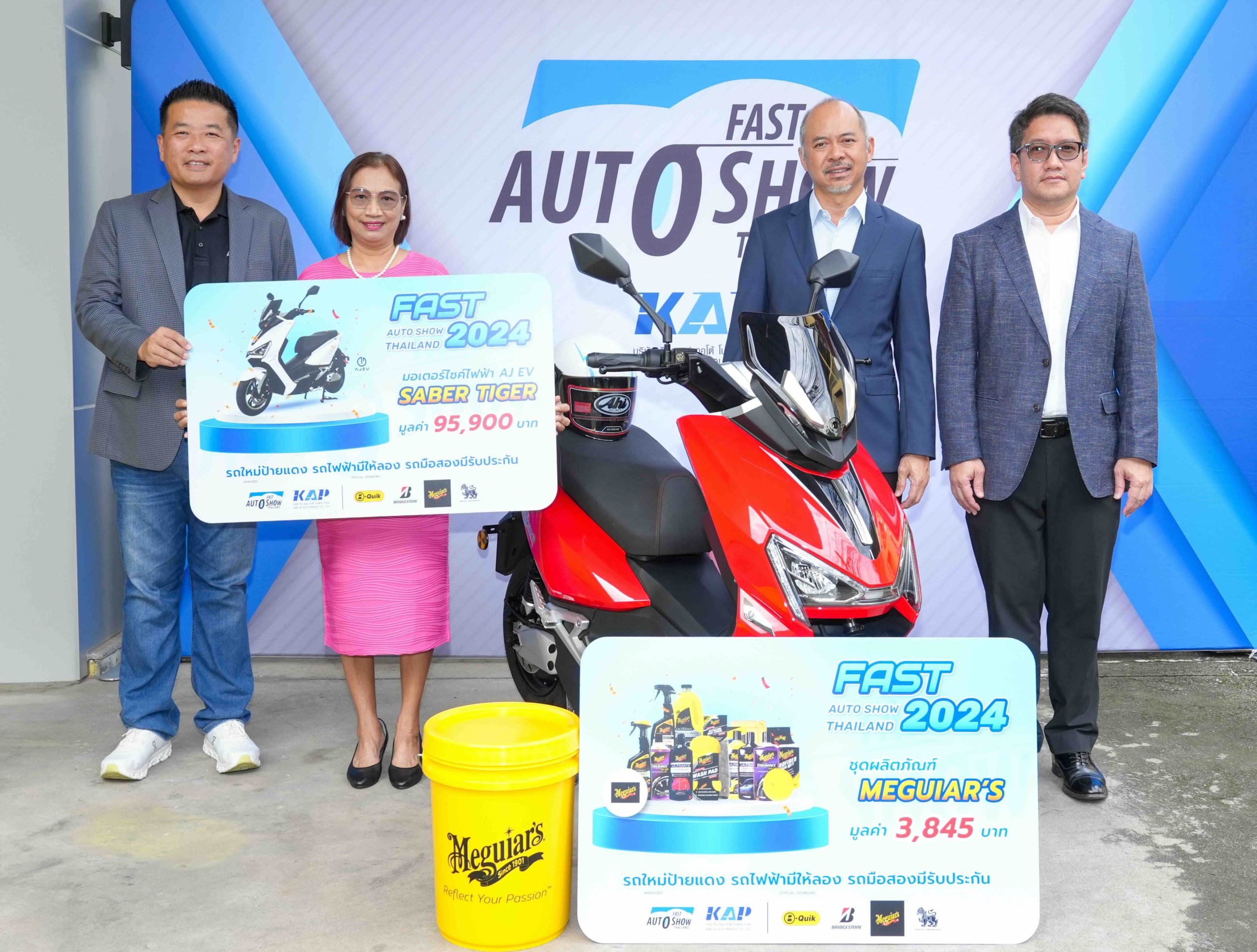 นายพัฒนเดช อาสาสรรพกิจ ประธานจัดงาน “ฟาสต์ ออโต โชว์ ไทยแลนด์ 2024” งานแสดงและซื้อ-ขายรถยนต์ครบวงจร ร่วมส่งมอบรางวัลใหญ่ “รถมอเตอร์ไซค์ไฟฟ้า AJ EV” จำนวน 2 รางวัล พร้อมชุดผลิตภัณฑ์ดูแลรักษารถยนต์ Meguiar’s มูลค่ารวมกว่า 177,490 บาท ให้แก่ผู้โชคดีที่ได้สิทธิ์ “ซื้อรถลุ้นรถ” จากการจองหรือซื้อรถ ทั้งรถใหม่ป้ายแดงและรถยนต์ใช้แล้วภายในงาน “ฟาสต์ ออโต โชว์ ไทยแลนด์ 2024” จัดขึ้นเมื่อวันที่ 3-7 กรกฎาคม 2567 ที่ผ่านมา โดยมี นายชลัทชัย ปภัสร์พงษ์ รองประธานจัดงานฝ่ายรถใหม่ นายอัษฎาวุธ อาสาสรรพกิจ รองประธานจัดงานฝ่ายรถใช้แล้ว และ นายพีระพงศ์ เอี่ยมลำเนา รองประธานจัดงานฝ่ายรถตกแต่ง โมดิฟาย และกิจกรรม อีสปอร์ต มาร่วมแสดงความยินดีและส่งมอบรางวัลใหญ่ให้แก่ผู้โชคดีทั้ง 2 ท่าน ได้แก่