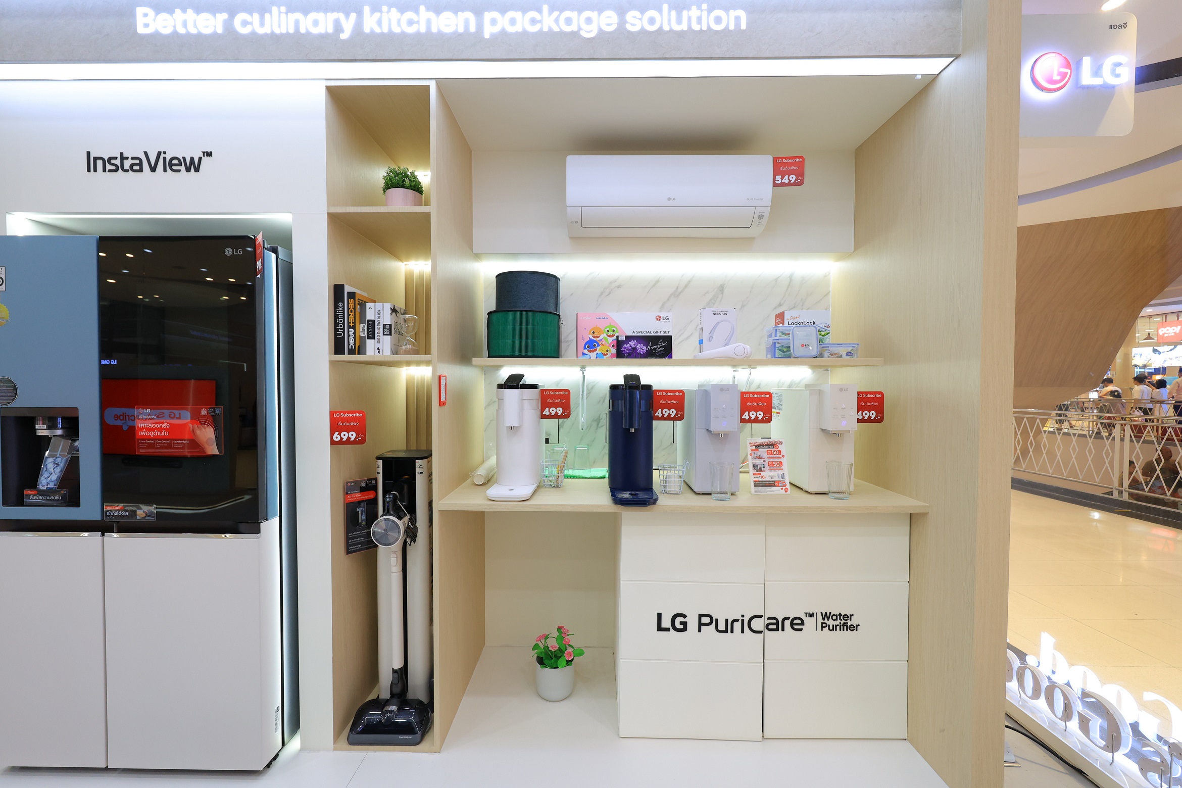 ภายในงานยังเปิดตัวผลิตภัณฑ์ไฮไลต์อย่างเครื่องกรองน้ำรุ่นใหม่ล่าสุด LG PuriCare ATOM 4D+ และ LG PuriCare Objet Collection ATOM V ที่เป็นนวัตกรรมใหม่ของแอลจี โดดเด่นทั้งในเรื่องของดีไซน์สวยงาม สามารถติดตั้งได้ทุกพื้นที่เพื่อรองรับไลฟ์สไตล์ที่หลากหลาย พร้อมเทคโนโลยีระบบฆ่าเชื้ออัตโนมัติ (Self-Sterilization) ที่ช่วยให้มั่นใจในความสะอาดและปลอดภัยยิ่งขึ้น อีกทั้งยังสะดวกสบายในการควบคุมและจัดการผ่านแอปพลิเคชัน ThinQ โดยราคาเริ่มต้นของบริการ LG Subscribe สำหรับเครื่องกรองน้ำ รวมสินค้า ไส้กรอง และบริการดูแล เริ่มต้นเพียง 399 บาทต่อเดือน