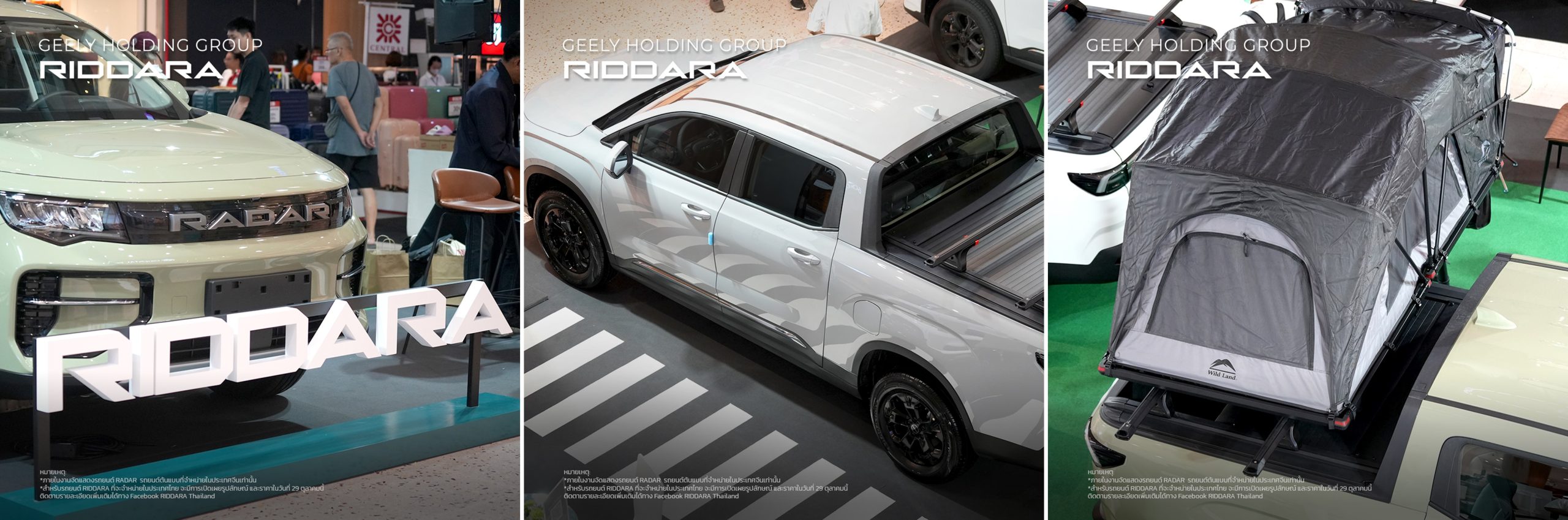RIDDARA เป็นแบรนด์รถกระบะพลังงานไฟฟ้า ในเครือ GEELY Holding Group กลุ่มบริษัทรถยนต์ชั้นนำระดับโลก ยกขบวนรถกระบะไฟฟ้า 100% มาอวดโฉมเป็นครั้งแรกในประเทศไทยพร้อมโชว์ศักยภาพของการเป็นแบรนด์รถยนต์พลังงานไฟฟ้าที่ให้ความสำคัญกับนวัตกรรมและเทคโนโลยีที่พร้อมมอบประสบการณ์การใช้งานรถกระบะรูปแบบใหม่และไลฟ์สไตล์ที่แตกต่าง เจาะกลุ่มผู้รักการเดินทางและชื่นชอบการทำกิจกรรม Outdoor ได้อย่างลงตัว