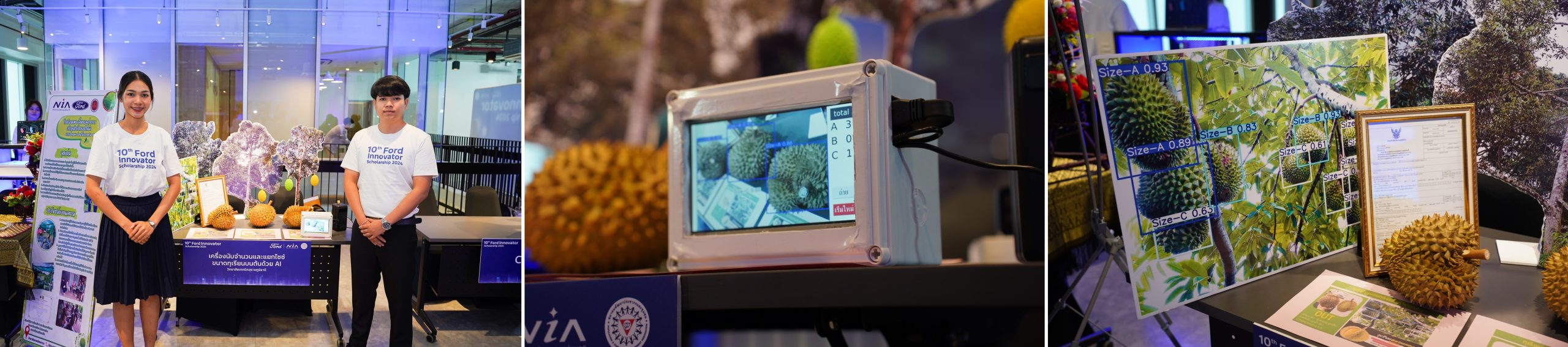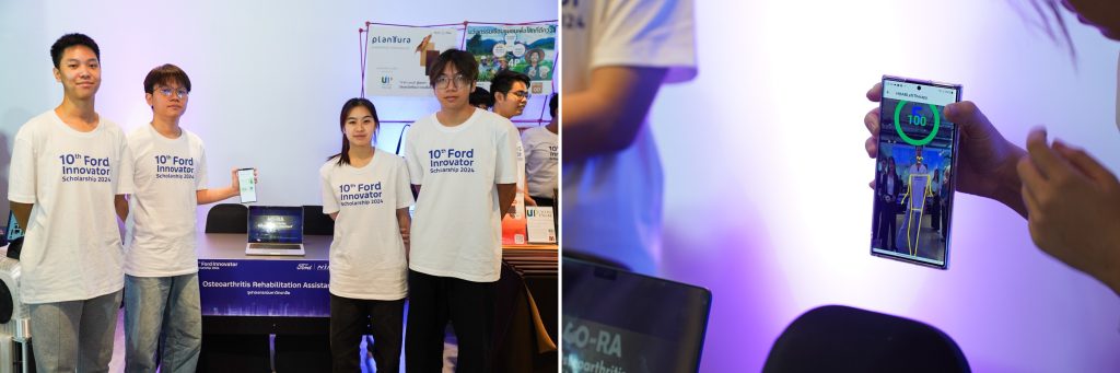 โครงการประกวดนวัตกรรมเพื่อชิงทุนการศึกษา ‘Ford Innovator Scholarship 2024’ จัดขึ้นภายใต้หัวข้อ ‘การออกแบบนวัตกรรมพลังบวก เชื่อมต่อชุมชน เพื่อโลกที่ดีกว่า’ (Connect Innovation with Communities for a Better World Challenge)’ โดยเน้นให้ผลงานนวัตกรรมสร้างประโยชน์แก่ชุมชนได้จริง ครอบคลุมแนวทางหลัก 3 ด้าน ได้แก่ นวัตกรรมสร้างศักยภาพเพื่ออาชีพในอนาคต นวัตกรรมเสริมอาชีพเพื่อธุรกิจยุคใหม่ และนวัตกรรมสร้างความปลอดภัยในชุมชน โครงการนี้เปิดรับสมัครผลงานตั้งแต่เดือนสิงหาคมที่ผ่านมา มีทีมนักเรียน นักศึกษา จากระดับมัธยมศึกษา อาชีวศึกษา และอุดมศึกษาทั่วประเทศ สมัครเข้าร่วมการแข่งขันถึง 235 ทีม จากนั้นคณะกรรมการได้คัดเลือก 10 ทีมเข้าสู่รอบสุดท้าย ประกอบด้วย ทีมมัธยมศึกษา 1 ทีม ทีมมัธยมศึกษาร่วมกับอุดมศึกษา 1 ทีม ทีมอาชีวศึกษา 4 ทีม และทีมอุดมศึกษา 4 ทีม โดยทีมที่ผ่านเข้ารอบได้ร่วมกิจกรรมเวิร์กช็อปเพื่อพัฒนาทักษะและเสริมความรู้จากผู้เชี่ยวชาญของฟอร์ดและสำนักงานนวัตกรรมแห่งชาติ หรือ NIA รวมถึงการฝึกเทคนิคการนำเสนอผลงานให้มีประสิทธิภาพจากทีมงานทีวีบูรพาในกิจกรรม Hackathon อีกด้วย