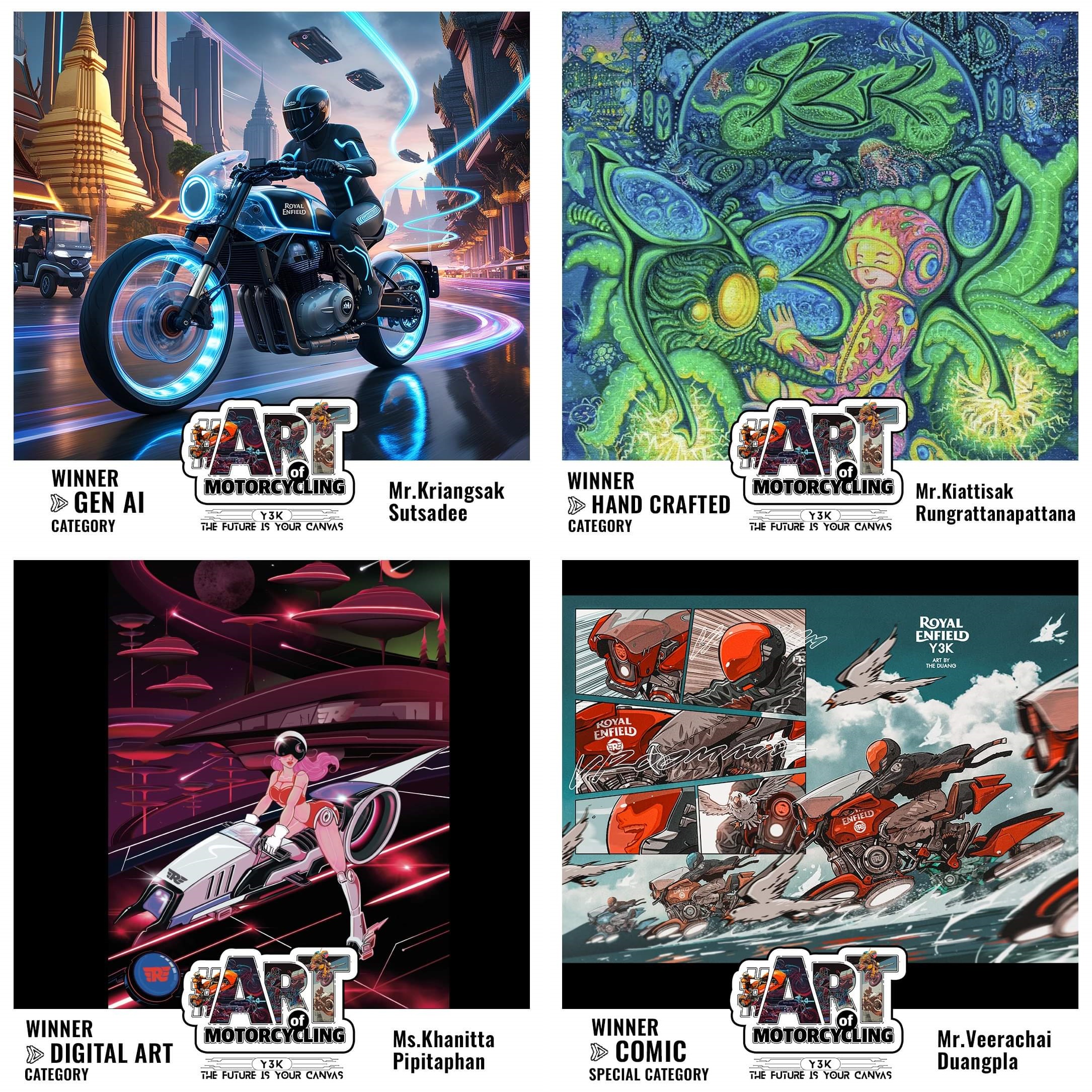 และที่สุดแห่งความปัง! ขอแสดงความยินดีกับผู้ชนะระดับประเทศของ Royal Enfield’s #ArtofMotorcycling Season 4 ภายใต้ธีม ‘Y3K edition’ คือ คุณวีระชัย ดวงพลา จากผลงานในหมวด Comic Art ที่นอกจากจะได้รับเงินรางวัล 50,000 บาท ผลงานของคุณวีระชัยชิ้นนี้จะเป็นตัวแทนของประเทศไทยร่วมประกวดในระดับ APAC เพื่อชิงรางวัลใหญ่ ได้ร่วมทริปไปสัมผัสวิถีสองล้อ #PureMotorcycling ในงาน MOTOVERSE 2024 ซึ่งเป็นการรวมตัวประจำปีของผู้ที่ชื่นชอบ Royal Enfield หลากหลายพันคน จัดขึ้นที่รัฐโกอา (Goa) ประเทศอินเดีย พร้อมได้โชว์ผลงานในพื้นที่ Art of Motorcycling Arena และมีโอกาสได้ร่วมงานกับ Royal Enfield ในโครงการออกแบบสุดพิเศษ!