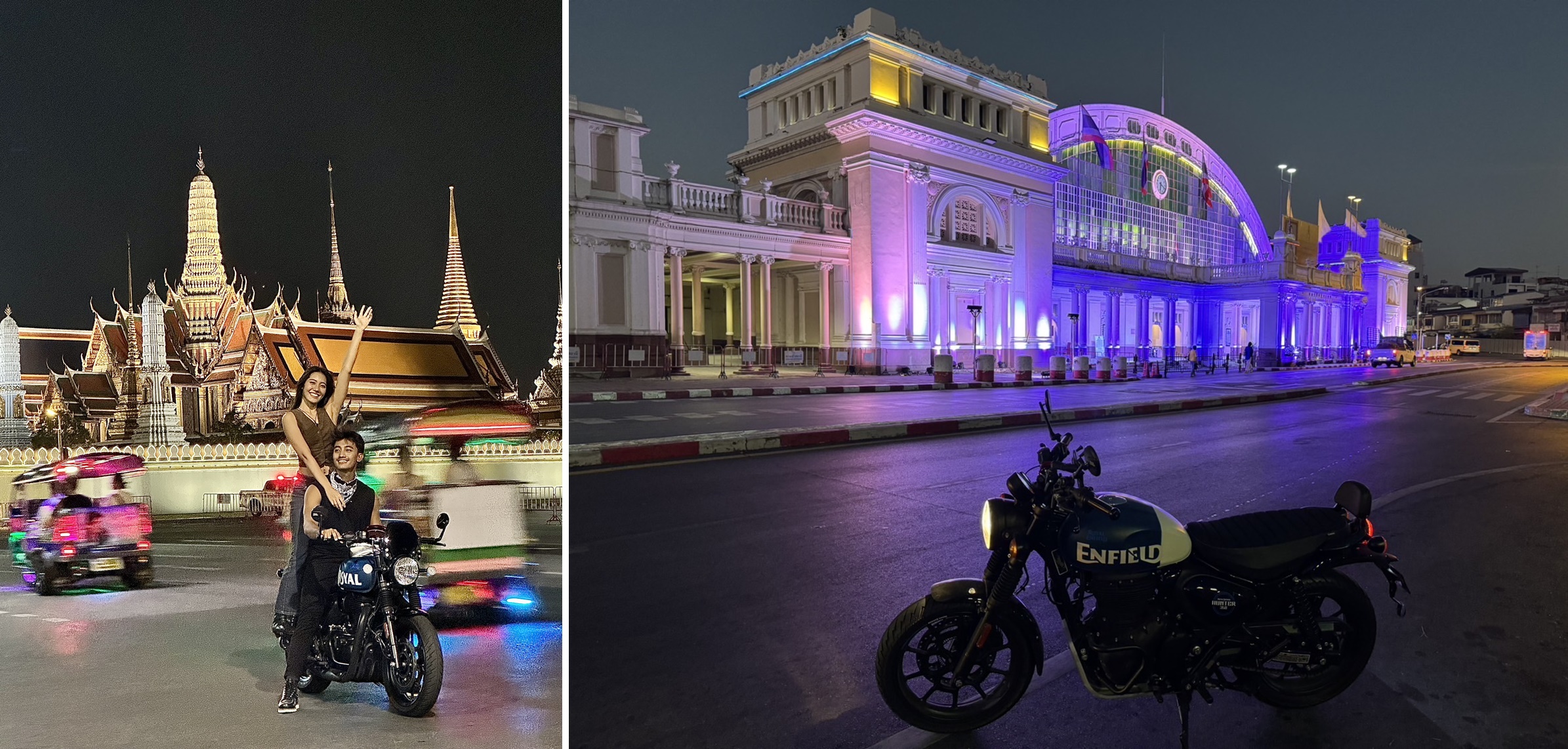 - กรุงเทพฯ: ใครว่ากรุงเทพฯ ไม่มีอะไร? ลองเปลี่ยนมุมมองใหม่ ไม่ต้องไปไหนไกล แค่ออกขี่มอเตอร์ไซค์รอบกรุงเทพฯ ในช่วงเทศกาลปลายปี ก็ฟินได้ไม่แพ้ใคร สำหรับสาย Cafe Hopping สุดชิค สุดชิลไม่ควรพลาดร้านคาเฟ่เปิดใหม่ ที่เปิดกันไม่หยุดหย่อน! แวะซัก 2-3 ร้าน ชิมขนม กาแฟกันให้ฉ่ำ ก็เก๋ไปอีกแบบ สำหรับสาย Night Ride การขี่มอเตอร์ไซค์ชมไฟประดับ พร้อมกับบรรยากาศ festive ทั้งริมแม่น้ำเจ้าพระยา หรือเส้นรอบเมืองในช่วงกลางคืน ก็เติมเต็มความสุขได้อย่างลงตัว ก่อนเข้าที่พักแวะชิลซักบาร์ ก็น่าสนใจไม่น้อย