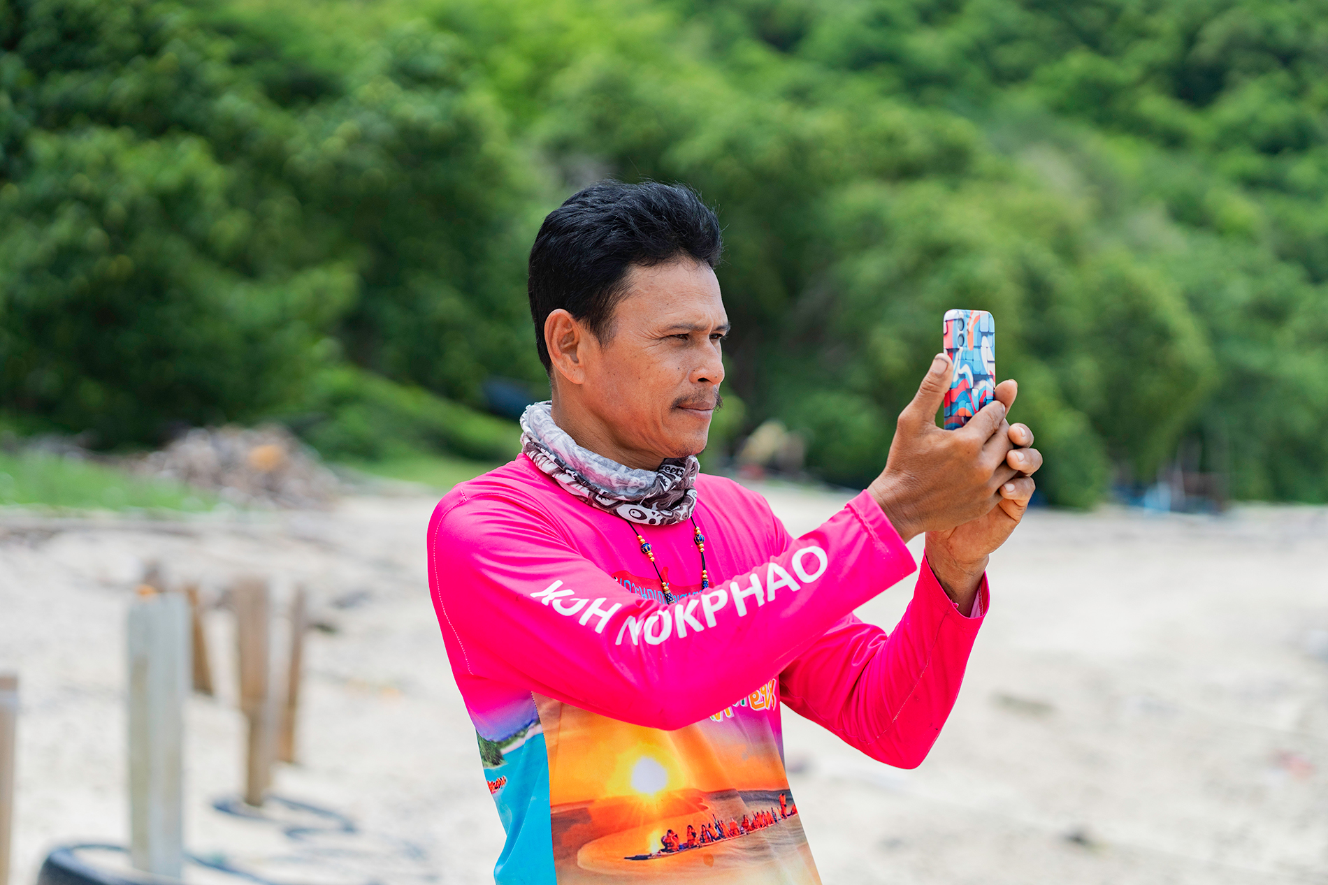 “เมื่อก่อน ชาวเกาะนกเภามีสถานะเหมือนคนชายขอบ เวลาจะติดต่อสื่อสารกับคนข้างนอกที ต้องขี่มอเตอร์ไซค์ไปที่หัวเกาะ เพราะตรงนั้นเป็นจุดเดียวที่สามารถรับสัญญาณโทรศัพท์จากสถานีฐานที่ตั้่งอยู่บนเกาะอื่นได้ นั่นทำให้เวลาลูกค้าติดต่อมา เราก็ไม่ได้รับการแจ้งเตือน พอโทรกลับ เขาก็ไปจองที่อื่นแล้ว หรือเวลาที่ลูกค้าคิดว่าจะมาเที่ยวที่นี่ดีไหม พอรู้ว่าไม่มีสัญญาณมือถือ พวงเขาก็หนีกันหมด” เสธ กล่าว