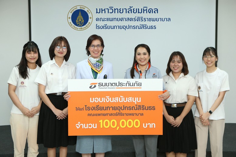 นางวิชินี โอรพันธ์ ประธานเจ้าหน้าที่บริหาร บริษัท ธนชาตประกันภัย จำกัด (มหาชน) มอบทุนสนับสนุนด้านการศึกษาให้กับ นางสาวธิดา ทรัพย์คงมั่น, นางสาวสุภัค คงเมือง, นางสาวณัฐวรา ตั้งธนากาล และนางสาวปุณณ์ภัสสรณ์ เตียวตระกูล นักศึกษาระดับปริญญาตรี โรงเรียนกายอุปกรณ์สิรินธร คณะแพทยศาสตร์ศิริราชพยาบาล มหาวิทยาลัยมหิดล ซึ่งเป็นสถาบันที่จัดการเรียนการสอนด้านกายอุปกรณ์แห่งเดียวในประเทศไทย ผลิตนักกายอุปกรณ์ที่มีคุณภาพ ช่วยให้ผู้พิการได้มีคุณภาพชีวิตที่ดีขึ้น โดยมี รศ.พญ.กุลภา ศรีสวัสดิ์ ผู้อำนวยการโรงเรียนกายอุปกรณ์สิรินธร เป็นสักขีพยานการรับมอบ