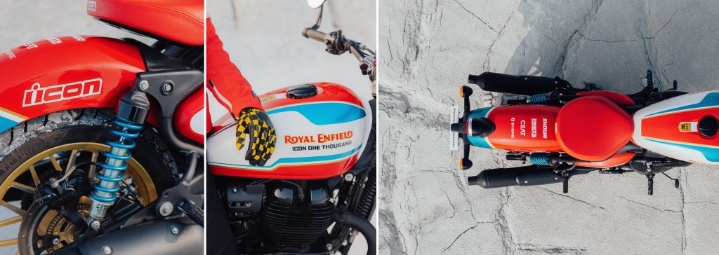 ความร่วมมือครั้งนี้ตอกย้ำถึงความมุ่งมั่นของ โรยัล เอ็นฟีลด์ ในการบ่มเพาะคอมมูนิตี้นักคัสตอมรถทั่วโลก พร้อมเฉลิมฉลองมรดกของตนเอง รถจักรยานยนต์แต่ละคันจะมาพร้อมกับเสื้อแจ็คเก็ต Slabtown Intercept RE ที่ออกแบบโดย ICON เสื้อแจ็คเก็ตสุดพิเศษนี้ทำจากหนังกลับและผ้า ประดับด้วยหนังปะและงานปัก เพิ่มเสน่ห์ให้กับนักสะสม