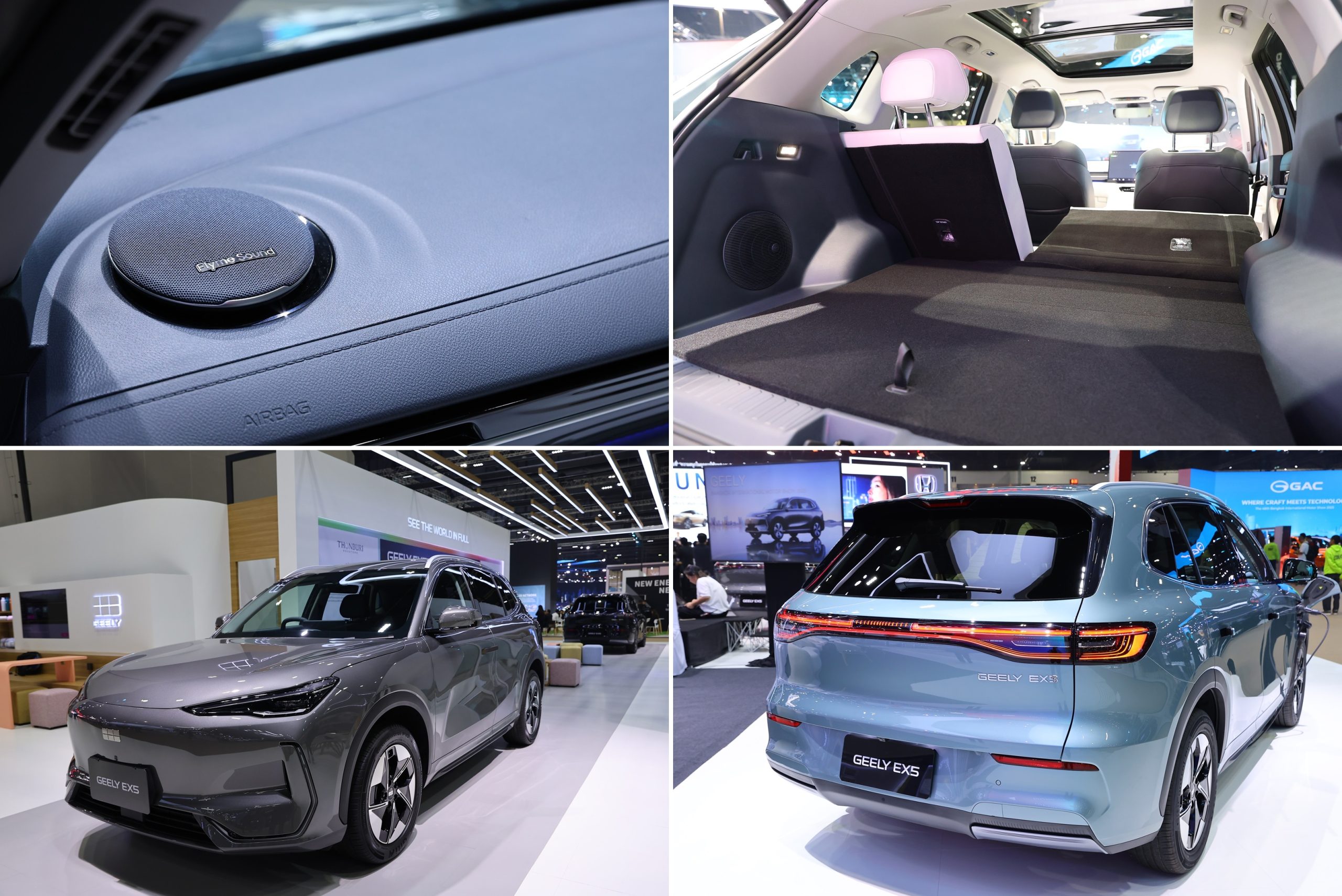 ไฮไลท์ของบูธจีลี่ภายในงานพบกับ GEELY EX5 รถอเนกประสงค์อัจฉริยะพลังงานไฟฟ้า 100% นิยามใหม่แห่งยานยนต์ไฟฟ้าที่เปิดตัวรุ่นพวงมาลัยขวาครั้งแรกในโลกที่ประเทศไทยเมื่อปีที่ผ่านมา โดดเด่นด้วยการออกแบบที่หรูหราผสานเทคโนโลยีอัจฉริยะ ถูกพัฒนาบนแพลตฟอร์ม Global Intelligent Electric Architecture (GEA) พื้นฐานเทคโนโลยียานยนต์ไฟฟ้าใหม่ล่าสุดของ GEELY ที่ออกแบบมาเฉพาะสำหรับรถยนต์ไฟฟ้า มีความแข็งแกร่งด้านโครงสร้างที่ผสานกับเทคโนโลยียานยนต์ไฟฟ้าขั้นสูง เสริมด้วยนวัตกรรม Cell-to-Body (CTB) Integration ที่มีความโดดเด่นด้านการจัดการพื้นที่และความแข็งแกร่งของโครงสร้าง มาพร้อมนวัตกรรม Short Blade Battery แบตเตอรี่ LFP รุ่นใหม่ ที่มีขนาดเล็กแต่โดดเด่นด้านความแข็งแกร่ง ทนทานมาพร้อมประสิทธิภาพด้านระยะทางการขับขี่ ผ่านมาตรฐานการทดสอบความปลอดภัยในสภาวะสุดขั้วหลากหลายรูปแบบ นอกจากนี้ระบบขับเคลื่อนอัจฉริยะ 11-in-1 Intelligent Electric Drive ยังมอบสมรรถนะการขับขี่ที่ทรงพลังแต่ประหยัดพลังงาน ผสานระบบความปลอดภัย L2-ADAS (Level 2 Advanced Driver Assistance System) ระบบช่วยเหลือผู้ขับขี่ 16 ฟังก์ชั่น 360° รอบคัน ที่ยกระดับมาตรฐานการขับขี่อัจฉริยะสู่ความปลอดภัยแบบเต็มพิกัด ไม่เพียงเท่านั้นยังมาพร้อมระบบปฏิบัติการ Flyme Auto ที่รองรับการเชื่อมต่อด้วยคำสั่งเสียงและความบันเทิงล้ำสมัย พร้อมฟังก์ชัน V2L & V2V ที่สามารถจ่ายกระแสไฟฟ้าให้เครื่องใช้ไฟฟ้ารวมถึงชาร์จไฟให้รถยนต์ไฟฟ้าคันอื่นได้
