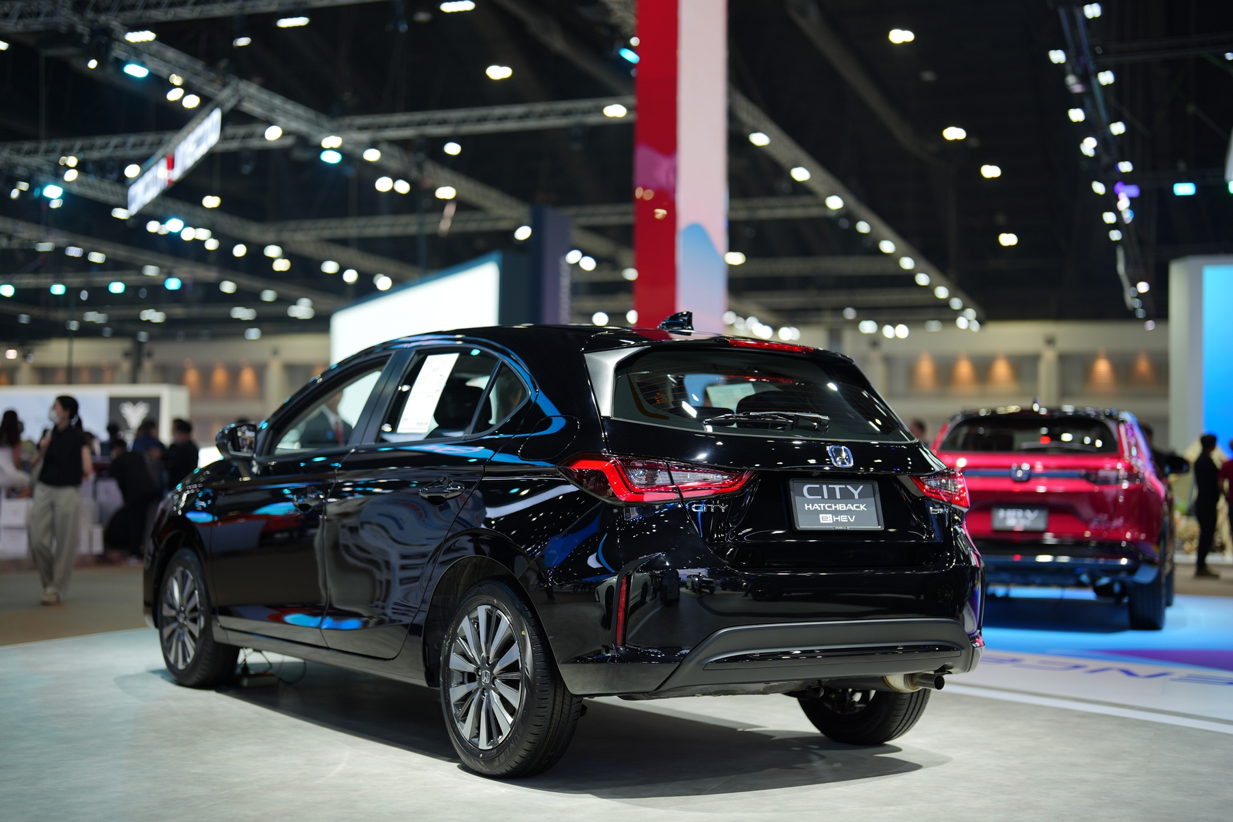 - Honda City Hatchback e:HEV พร้อมทะยานไปกับขุมพลังขับเคลื่อนฟูลไฮบริด e:HEV ด้วยกำลังของมอเตอร์ไฟฟ้า 2 ตัว ผสานกับเครื่องยนต์ 1.5 ลิตร Atkinson Cycle DOHC i-VTEC 4 สูบ 16 วาล์ว และเกียร์อัตโนมัติ E-CVT ที่จะทำให้คุณสัมผัสได้ถึงความเร้าใจตั้งแต่ออกตัว ด้วยแรงบิดมอเตอร์ถึง 253 นิวตัน-เมตร ให้อัตราประหยัดน้ำมันสูงสุดที่ 27.8 กม./ลิตร เพิ่มความมั่นใจไปกับ Honda SENSING ที่มาพร้อมฟังก์ชันระบบควบคุมความเร็วแบบแปรผัน (Adaptive Cruise Control: ACC) พร้อมระบบปรับความเร็วตามรถยนต์คันหน้าที่ความเร็วต่ำ (with Low-Speed Follow: with LSF) และฟีเจอร์เพื่อความสะดวกสบายและความปลอดภัยครบครัน เช่น ระบบแสดงภาพมุมอับสายตาขณะเปลี่ยนเลน (Honda LaneWatch) ระบบล็อกรถอัตโนมัติเมื่อกุญแจรีโมทอยู่ห่างจากตัวรถ (Walk Away Auto Lock) กล้องส่องภาพด้านหลังปรับมุมมอง 3 ระดับ (Multi-Angle Rearview Camera) เป็นต้น ภายในกว้างขวาง มาพร้อมวัสดุเบาะหนังแท้และหนังสังเคราะห์ตกแต่งด้วยแถบสีแดง พร้อมเบาะนั่งอัลตราซีท (ULTR) แยกพับ 60:40 ที่สามารถปรับพับเพื่อเพิ่มสเปซการใช้งานอเนกประสงค์ได้ดั่งใจ