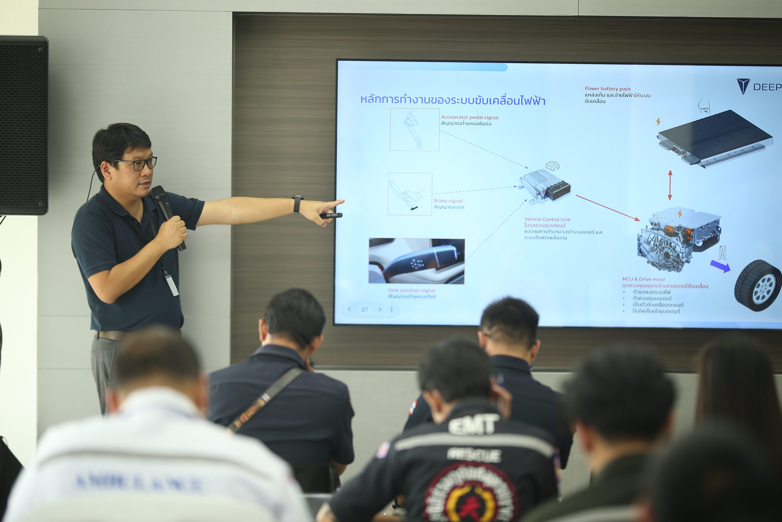 ในยุคที่รถยนต์ไฟฟ้า (EV) กำลังเพิ่มจำนวนบนท้องถนนอย่างรวดเร็วในประเทศไทยกับยอดจดทะเบียนในปี 2567 ที่ผ่านมาสูงถึง 96,736 คัน และมียอดสะสมถึง 227,490 คัน* ความรู้เกี่ยวกับการดูแลรักษายานยนต์ไฟฟ้าและวิธีรับมือเมื่อเกิดเหตุฉุกเฉินหรืออุบัติเหตุ จึงเป็นสิ่งที่จำเป็นอย่างมาก ทั้งในกลุ่มประชาชนทั่วไปและเจ้าหน้าที่กู้ภัย วันนี้ DEEPAL ในฐานะแบรนด์ยานยนต์ไฟฟ้าชั้นนำภายใต้ CHANGAN Automobile เล็งเห็นความสำคัญด้านความปลอดภัยบนท้องถนน และอยากเป็นส่วนหนึ่งในการส่งเสริมความรู้ เพื่อช่วยลดความเสี่ยงของการเกิดเหตุสุดวิสัย โดยเฉพาะใกล้ช่วงเทศกาลวันหยุดยาวที่กำลังจะมาถึง ซึ่งการจราจรจะหนาแน่นเป็นพิเศษ จึงตอกย้ำความมุ่งมั่น ผ่านการให้คำแนะนำด้านการรับมืออุบัติเหตุที่เกี่ยวข้องกับรถยนต์ไฟฟ้าอย่างถูกวิธีเพื่อความปลอดภัยของทุกคน