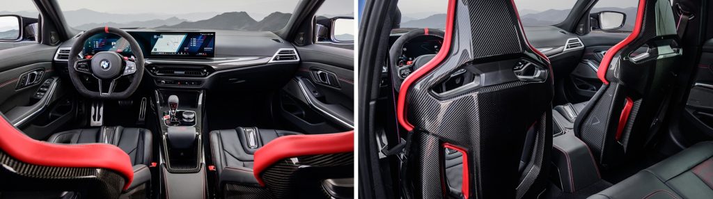 ภายในห้องโดยสารสะท้อนถึงดีเอ็นเอของมอเตอร์สปอร์ต ด้วยคอนโซลกลางคาร์บอนไฟเบอร์พร้อมตราสัญลักษณ์ CS ที่โดดเด่น เบาะนั่งแบบ Bucket Seat คาร์บอนไฟเบอร์พร้อมตราสัญลักษณ์ CS เรืองแสง และพวงมาลัย Alcantara พร้อมแป้นเปลี่ยนเกียร์คาร์บอนไฟเบอร์และเครื่องหมาย 12 นาฬิกาสีแดงอันเป็นเอกลักษณ์ ตราสัญลักษณ์ CS เฉพาะรุ่น ตอกย้ำสถานะพิเศษของรถยนต์คันนี้ ระบบ Active Sound Design NEXT พร้อมการปรับแต่งเฉพาะรุ่นCS ช่วยเพิ่มความเร้าใจในการขับขี่