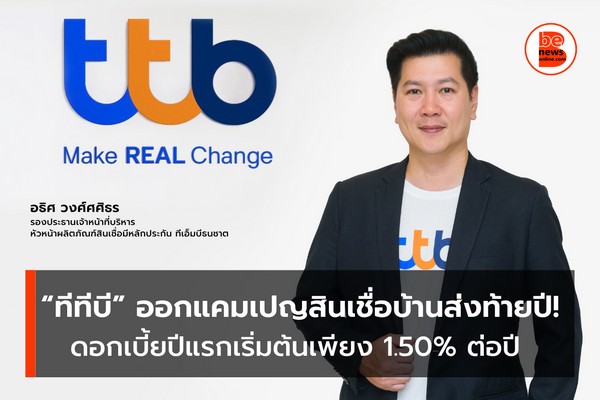 ทีทีบี ออกแคมเปญสินเชื่อบ้านส่งท้ายปี! รีไฟแนนซ์บ้าน-คอนโด ดอกเบี้ยปีแรกเริ่มต้นเพียง 1.50% ต่อปี