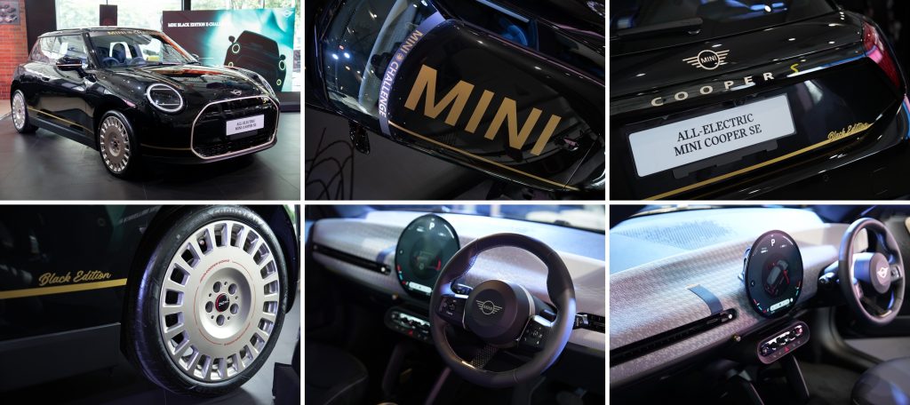 สัมผัส ‘MINI Black Edition E-Challenge’ ยนตรกรรมไฟฟ้าสุดชิค รุ่นพิเศษ ผลิตจำกัดและมีจำหน่ายที่โชว์ มินิ มิลเลนเนียม ออโต้ เท่านั้น รูปลักษณ์สปอร์ตเข้มดูดุดัน ด้วยตัวถังสีดำ ตัดกับล้อ JCW Rallye Spoke ขนาด 18 นิ้ว สีทอง พร้อมสติ๊กเกอร์ลายพิเศษ ‘Black Edition’ สีเดียวกัน ขณะที่อัตราเร่งก็จี๊ดจ๊าดสะใจสไตล์รถยนต์ไฟฟ้า 100% โดยมาพร้อมสิทธิพิเศษที่ผู้ครอบครองจะได้รับ คือ การเข้าร่วมกิจกรรม ‘MINI Challenge’ ที่จะจัดขึ้นในอนาคต