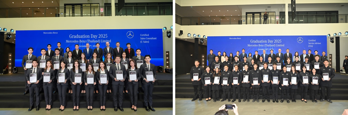 เมื่อวันที่ 10 ตุลาคม 2568 ที่ผ่านมา บริษัท เมอร์เซเดส-เบนซ์ (ประเทศไทย) จำกัด จัดงานวันสำเร็จการศึกษาและมอบประกาศนียบัตรให้แก่นักศึกษาช่างฝึกหัดจำนวน 25 คน ที่สำเร็จการศึกษาโครงการฝึกงานนักเรียนช่างฝึกหัดแบบทวิภาคี ในสาขาวิชาช่างเทคนิคยานยนต์เมคคาทรอนิกส์