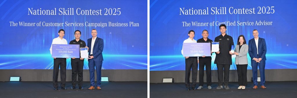 ในวันเดียวกันนั้น เมอร์เซเดส-เบนซ์ ประเทศไทย ได้จัดรอบชิงชนะเลิศของการแข่งขันทักษะการบริการลูกค้าระดับประเทศสำหรับปี 2568 โดยทุกศูนย์บริการอย่างเป็นทางการของเมอร์เซเดส-เบนซ์ได้มีส่วนร่วมในการแข่งขันทั้ง 2 ประเภท ได้แก่ การแข่งขันทักษะความเป็นเลิศของตำแหน่งงาน (CS Job profile) และการแข่งขันวางแผนธุรกิจและแคมเปญ (CS Campaign business plan) ผ่านการแข่งขันที่เข้มข้นและท้าทายหลายด้าน ซึ่งครอบคลุมทั้งการประเมินทางทฤษฎี การสอบภาคปฏิบัติผ่านการจำลองบทบาทสมมติ การแข่งขันตอบคำถามแบบเกมโชว์เสริมความรู้ในรอบชิงชนะเลิศ และการนำเสนอแผนธุรกิจ ซึ่งการแข่งขันนี้มีเป้าหมายเพื่อยกระดับความเชี่ยวชาญเฉพาะทางและการทำงานร่วมกันในทีม เพื่อให้เราก้าวหน้าในการรักษาความพึงพอใจของลูกค้า โดยผู้ชนะเลิศสำหรับปี 2568 มีรายชื่อดังนี้