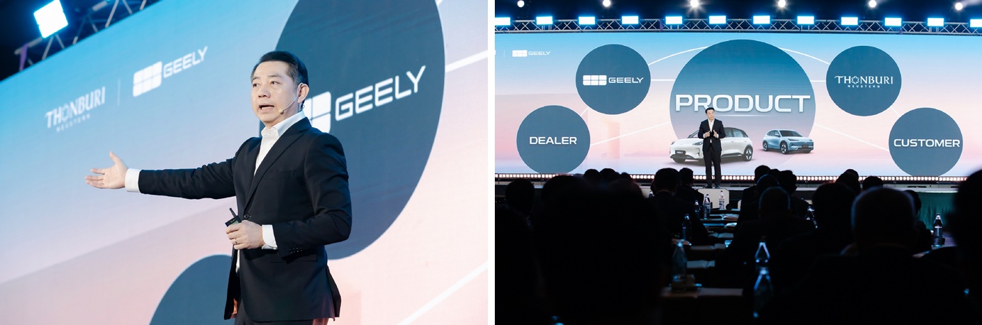 ภายในงานฯ บริษัท ธนบุรีนอยสเติร์น จำกัด ตอกย้ำความมุ่งมั่นในการเป็นผู้นำตลาดรถยนต์ไฟฟ้า ด้วยการประกาศนโยบายและแผนกลยุทธ์เพื่อการเติบโตอย่างยั่งยืน โดยชูจุดเด่นและสร้างความแตกต่างของผลิตภัณฑ์นวัตกรรมยานยนต์ไฟฟ้าที่ไม่เพียงโดดเด่นด้านคุณภาพและเทคโนโลยีล้ำสมัย แต่ยังถูกออกแบบมาอย่างพิถีพิถันเพื่อให้ตอบโจทย์ไลฟ์สไตล์ของผู้บริโภคชาวไทย โดยทางบริษัทฯ มีแผนที่จะเปิดตัวนวัตกรรมยานยนต์ไฟฟ้า GEELY รุ่นใหม่เข้าตลาดประเทศไทยอย่างน้อย 1 รุ่นในทุกๆ ปี เสริมความแข็งแกร่งด้วยแผนการขายและการตลาด 360 องศา ควบคู่ไปกับการยกระดับมาตรฐานบริการหลังการขาย ผ่านแผนการขยายเครือข่ายผู้จำหน่ายเพื่อเข้าถึงลูกค้ากลุ่มเป้าหมายได้ครอบคลุมยิ่งขึ้น ซึ่งปัจจุบันมีโชว์รูมและศูนย์บริการที่เปิดดำเนินการแล้ว 26 แห่ง โดยมุ่งเน้นการส่งมอบประสบการณ์ที่ดีที่สุดเพื่อสร้างความพึงพอใจให้กับลูกค้าในทุกมิติ การผสานความเชี่ยวชาญและประสบการณ์ร่วม 85 ปีของกลุ่มธนบุรี เข้ากับศักยภาพของ GEELY ในฐานะผู้นำยนตรกรรมระดับโลกนี้จะช่วยผลักดันให้ GEELY ก้าวขึ้นสู่แถวหน้าในตลาดอีวีไทยได้อย่างมั่นคง